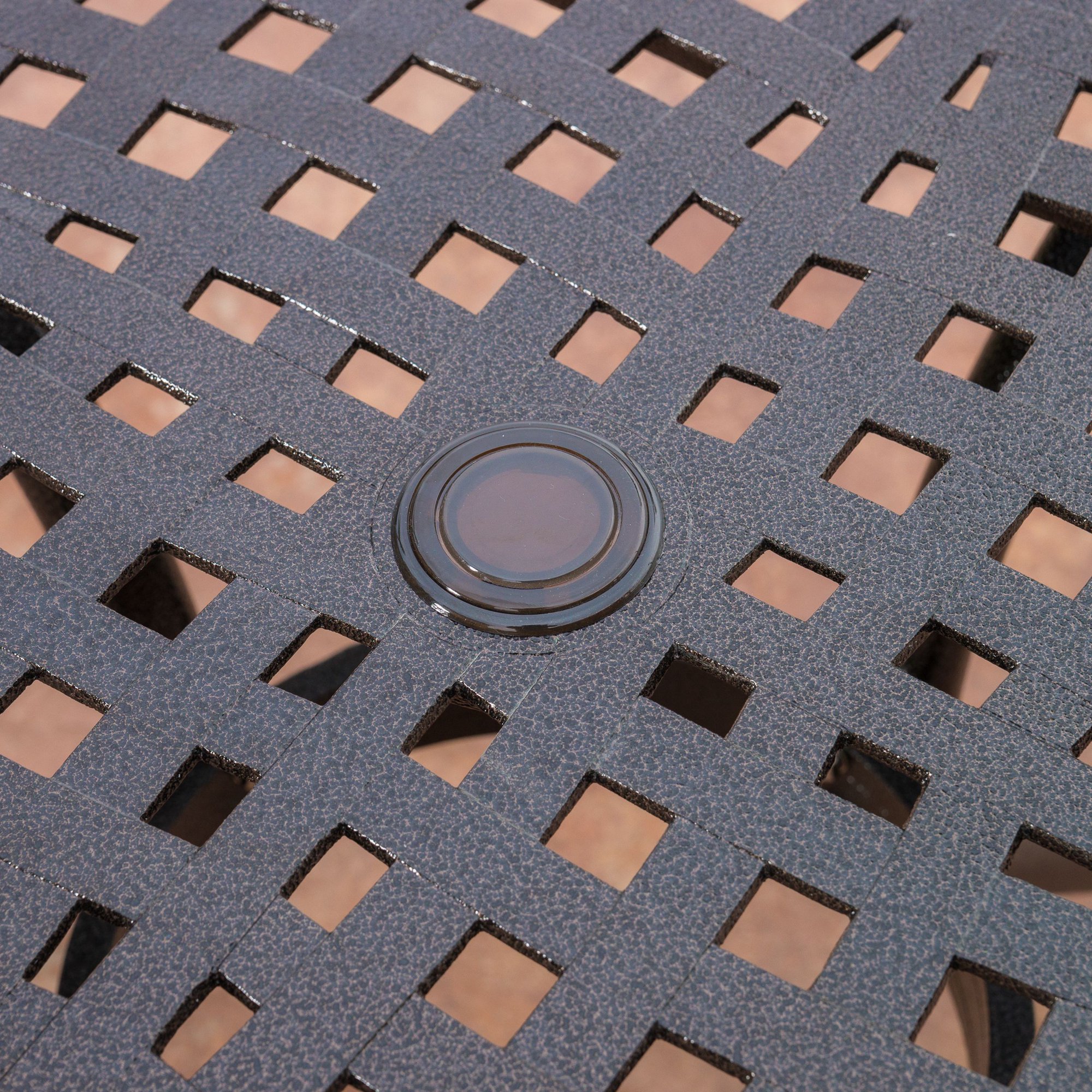 Noble House Pittman Outdoor Cast Aluminum Round Dining Table. Hammered Bronze