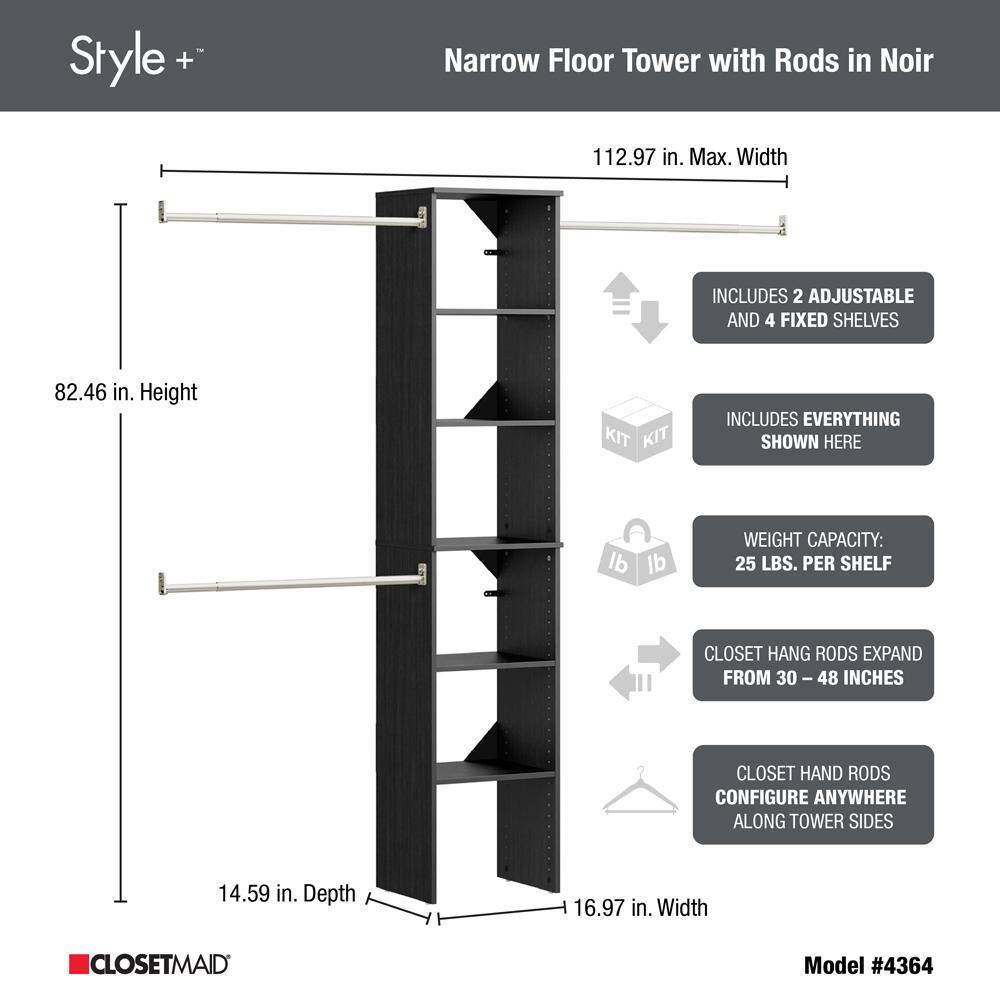 ClosetMaid 4364 Style+ 72 in. W - 113 in. W Noir Narrow Wood Closet System