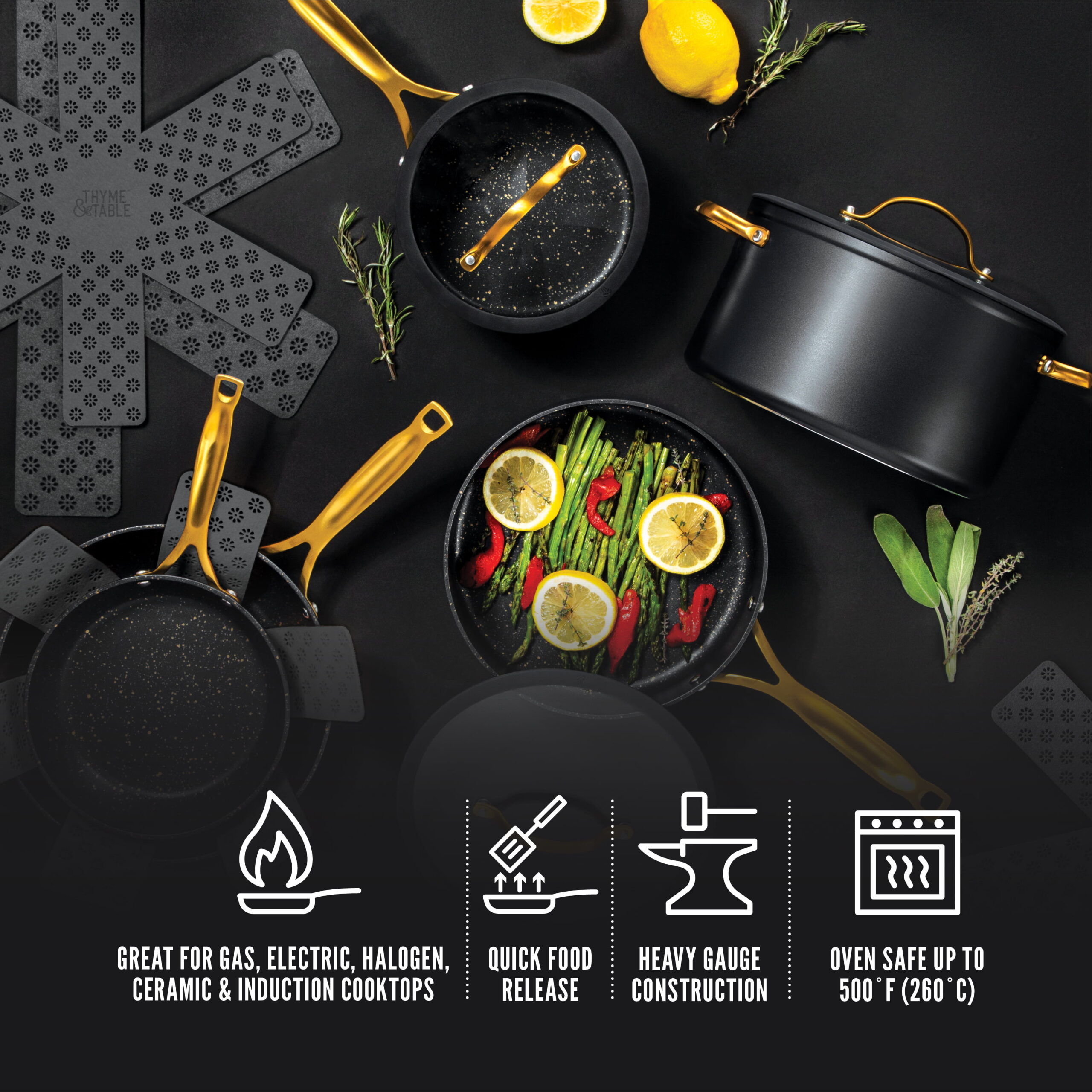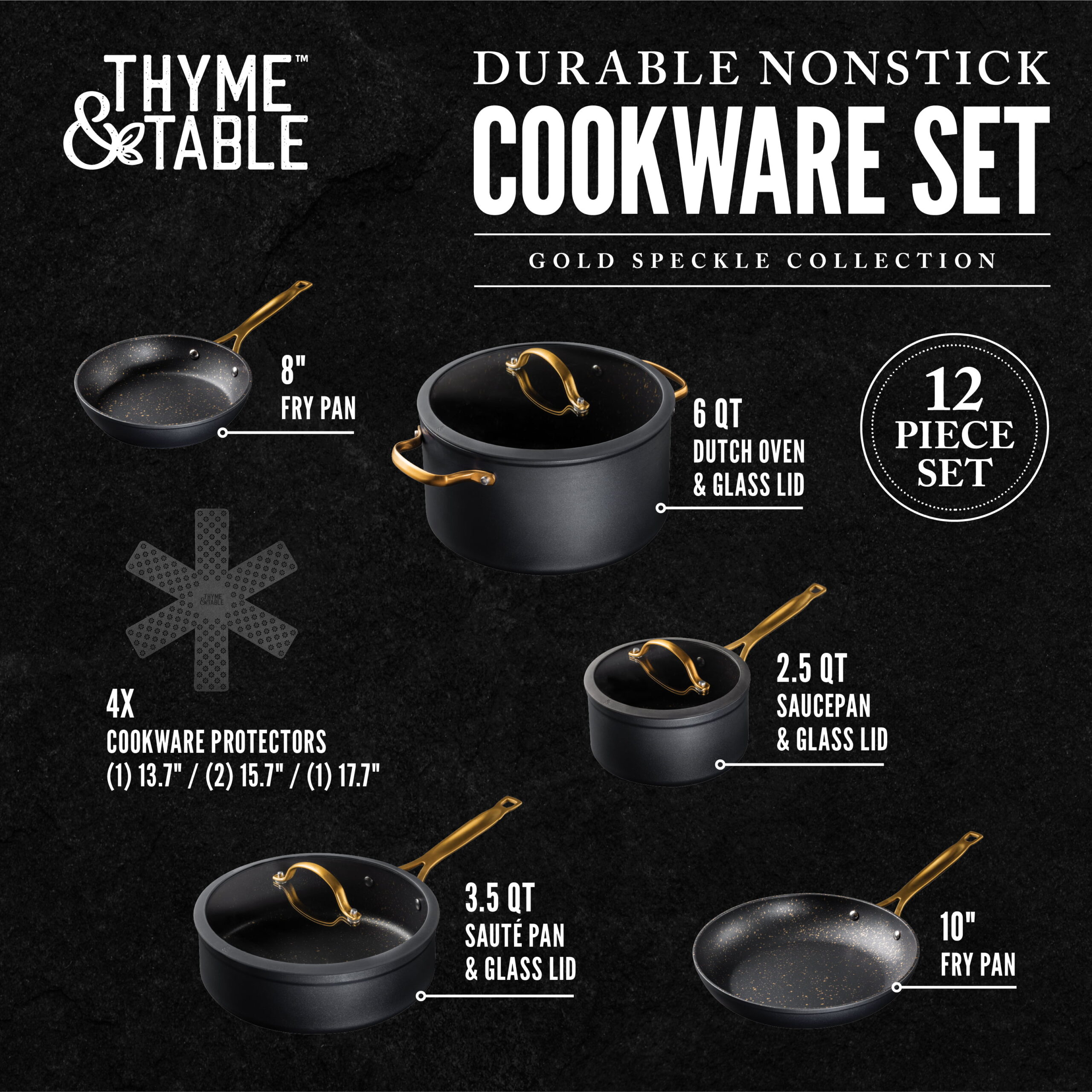 Thyme & Table Nonstick 12-Piece Cookware Set. Gold