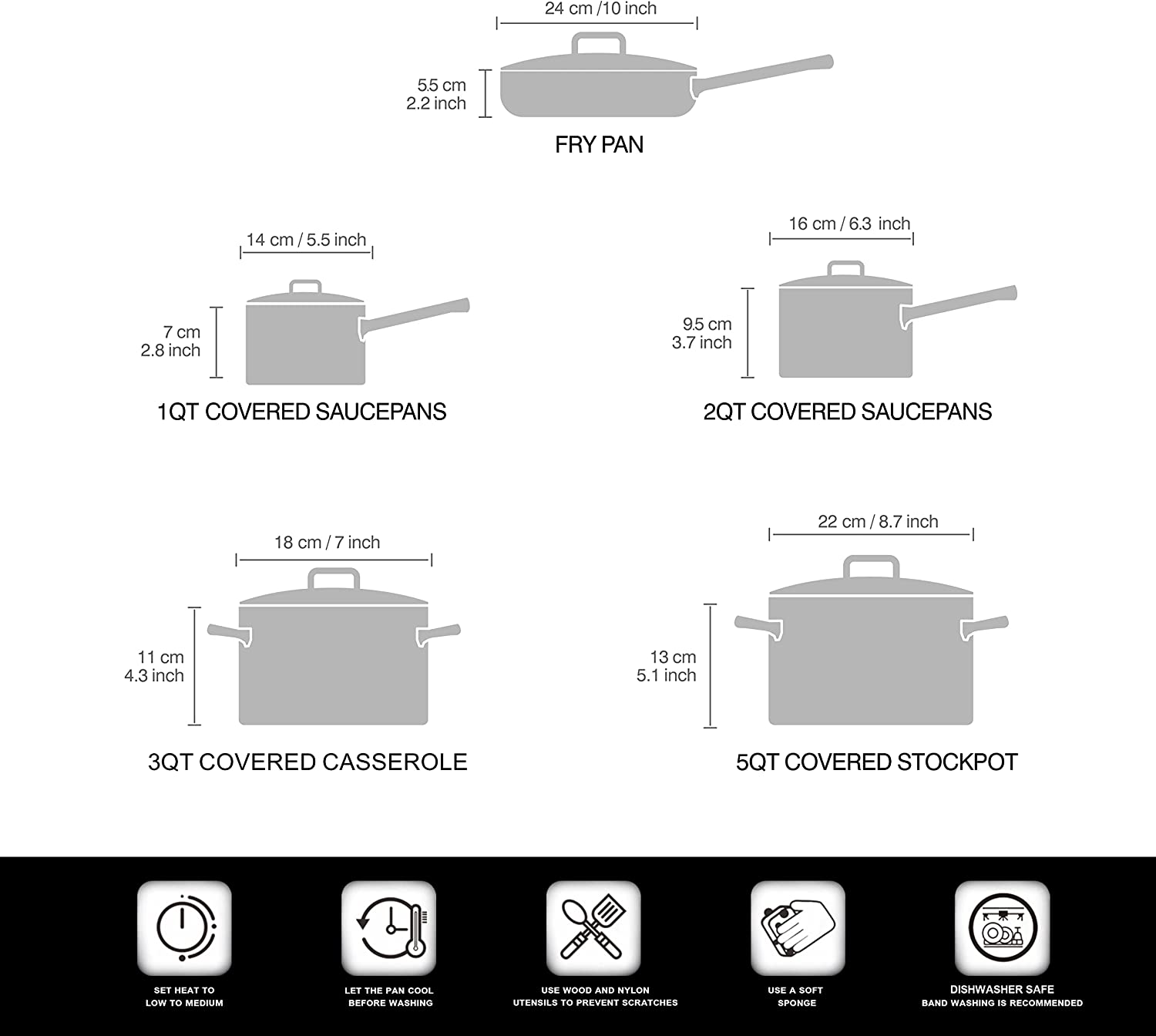 Cook N Home Stainless Steel Cookware Sets 10 Piece. Pots and Pans with Stay-Cool Handles Cooking Set for Kitchen. Dishwasher Safe. Silver