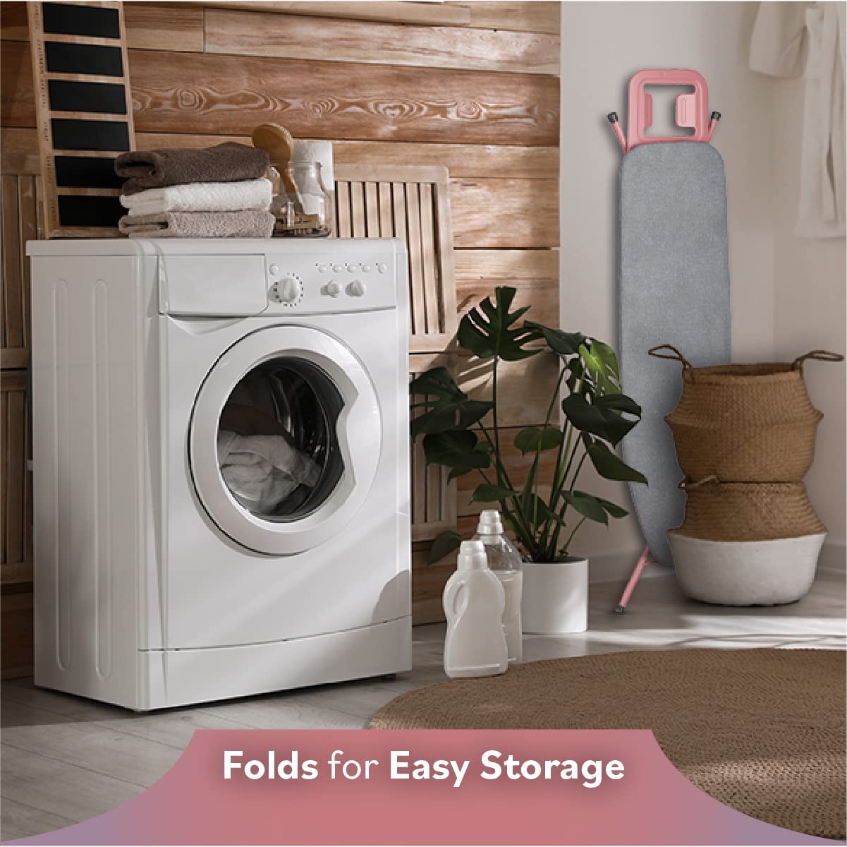 Bartnelli Ironing Board Made in Europe | Iron Board with 4 Layered Cover & Pad. Height Adjustable up to 36″ Features A Safety Iron Rest. 4 Steel Rose Legs. for Home Laundry Room or Dorm Use. Rose/Gray (43×14)