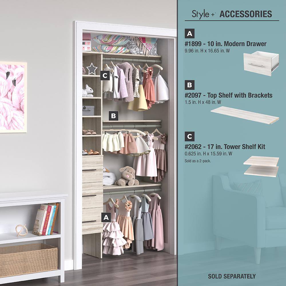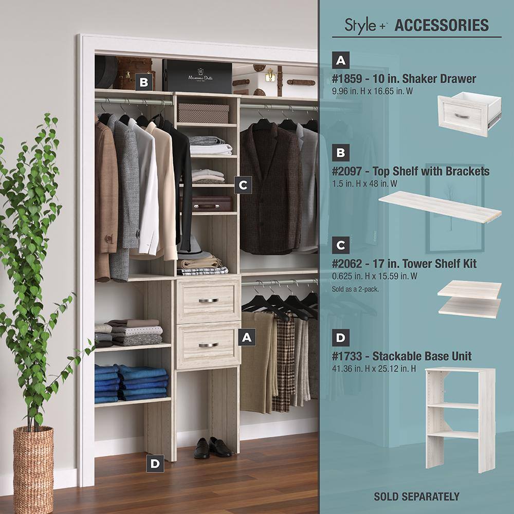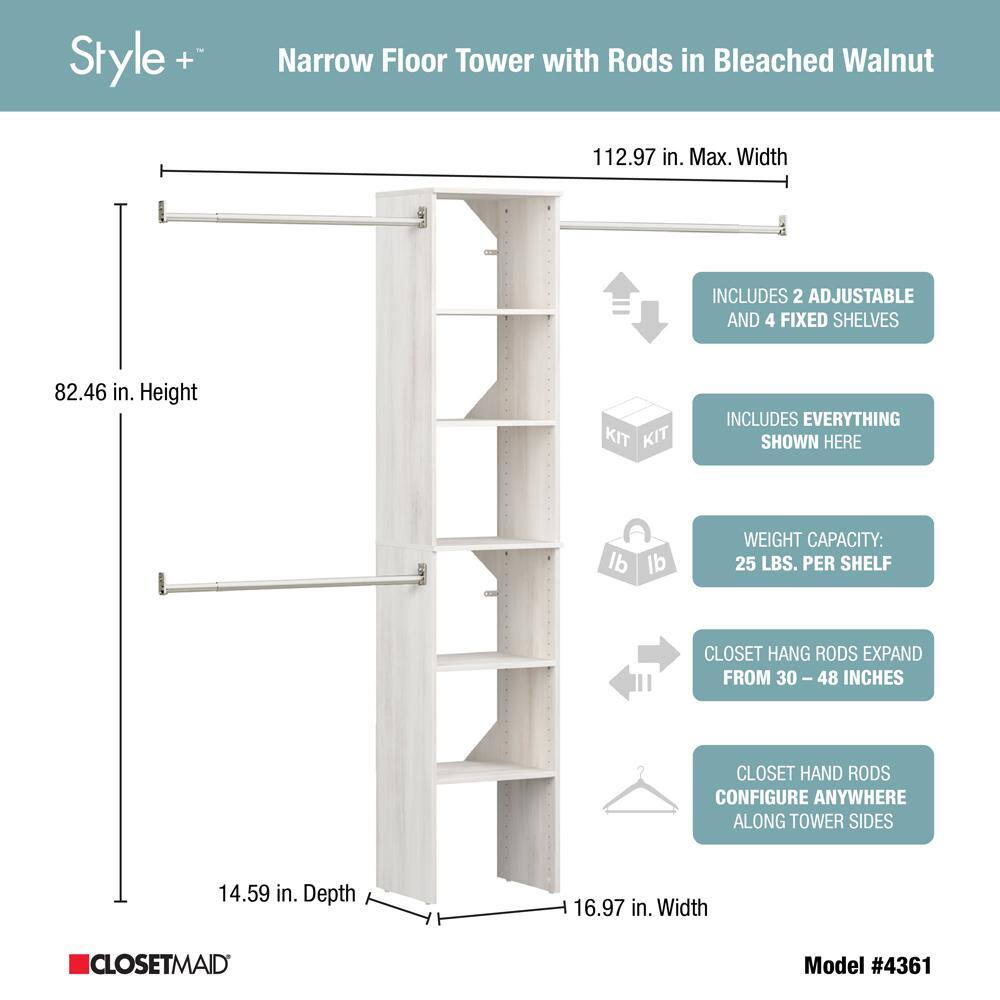 ClosetMaid 4361 Style+ 72 in. W - 113 in. W Bleached Walnut Narrow Wood Closet System