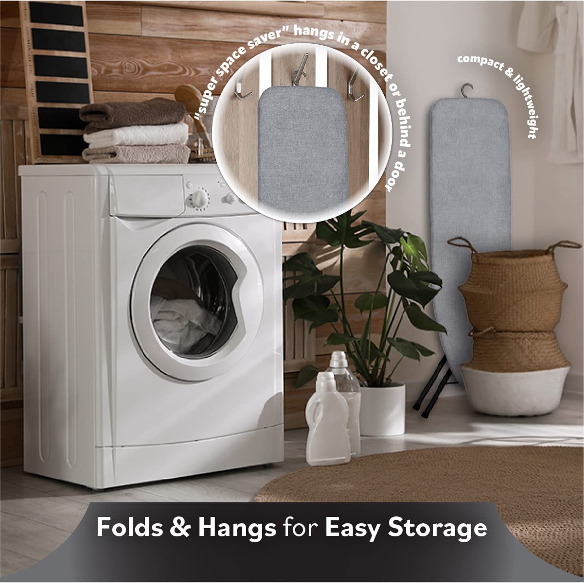 Bartnelli Patented Pulse Ironing Board | Made in Europe | Space Saving Smart Hanger Iron Board for Easy Storage | Lightweight. 4 Layer Cover. 4 Legs. for Dorm. Laundry Room. or Small Spaces. Black/Gray (43×13-35)