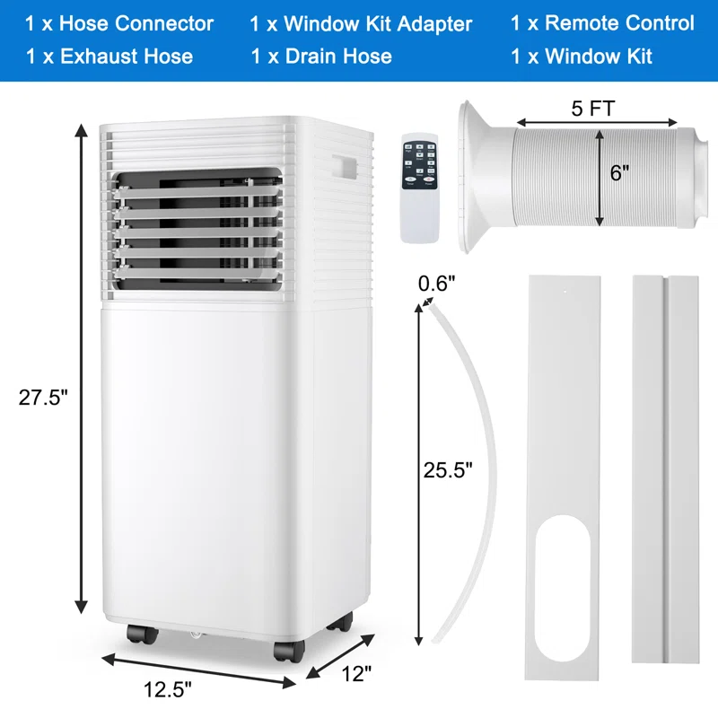 Costway EP23048 8000 BTU Portable Air Conditioner for 161 Square Feet Sq. Ft. with Remote Included
