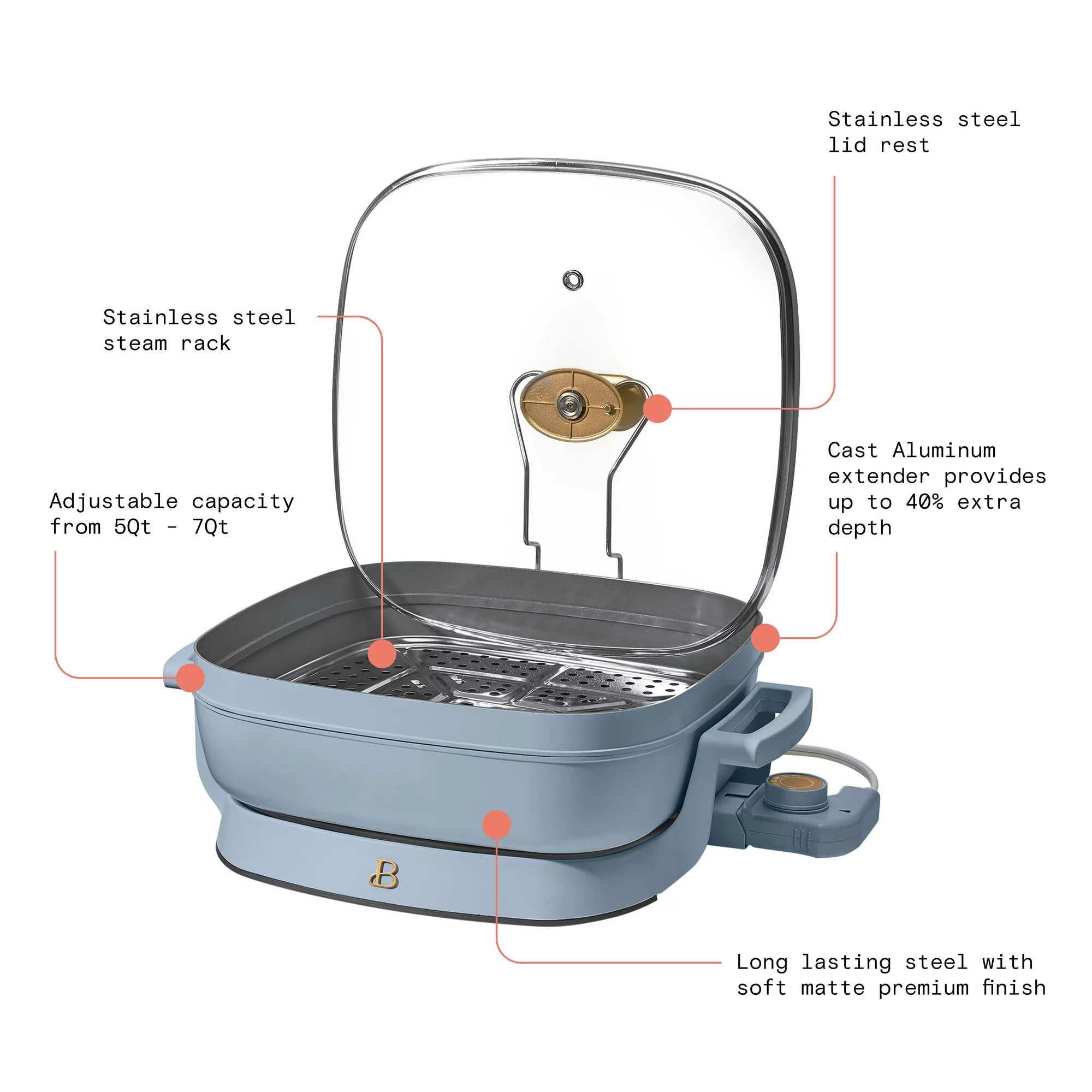 Beautiful 5-in-1 Electric Expandable Skillet. Cornflower Blue by Drew Barrymore. Up to 7 QT (Cornflower Blue)