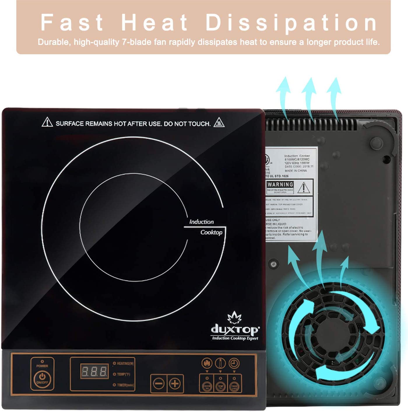 Duxtop 1800W Portable Induction Cooktop Countertop Burner. Silver 8120MC/BT-180G3