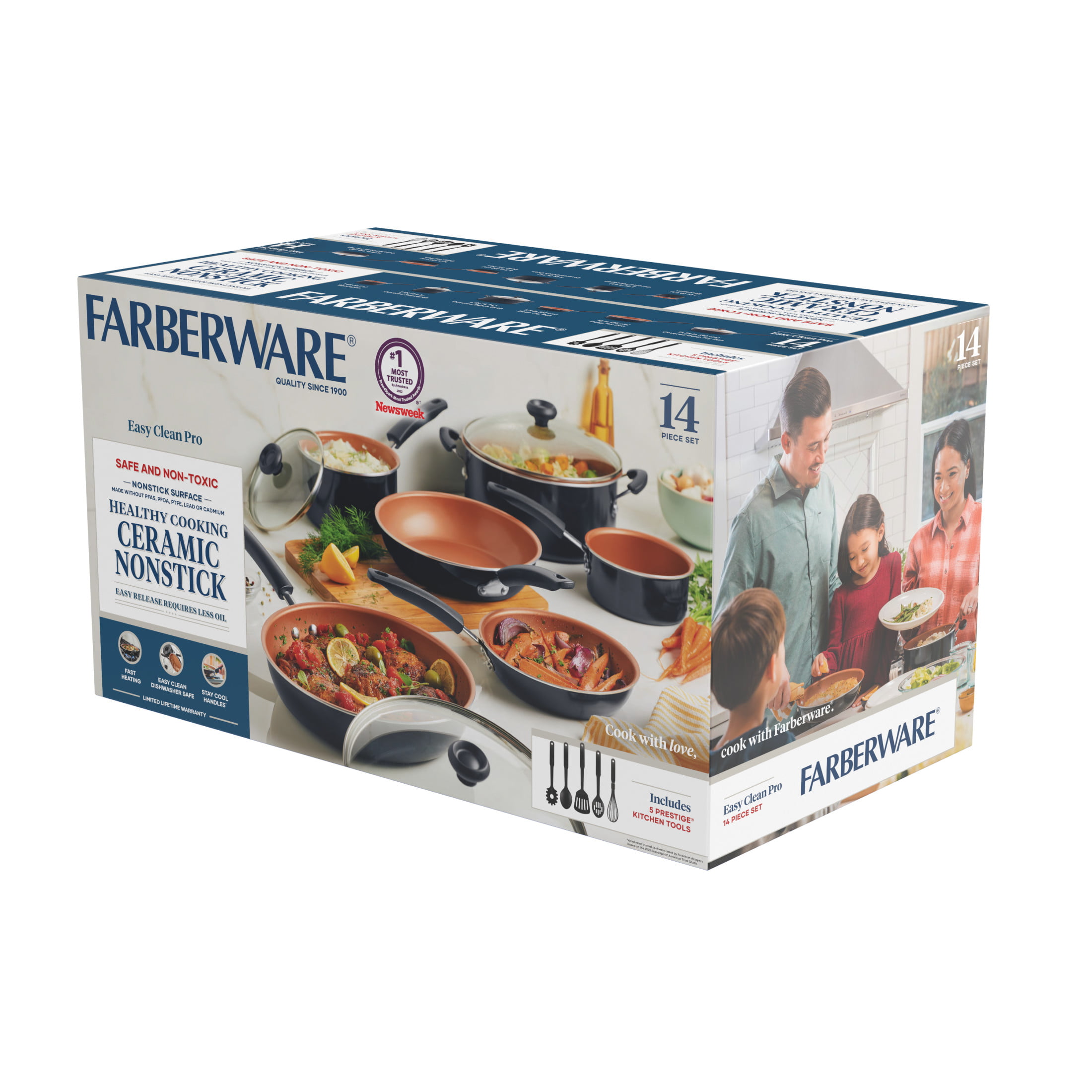 Farberware 14-Piece Easy Clean Pro Ceramic Nonstick Cookware Set. Black