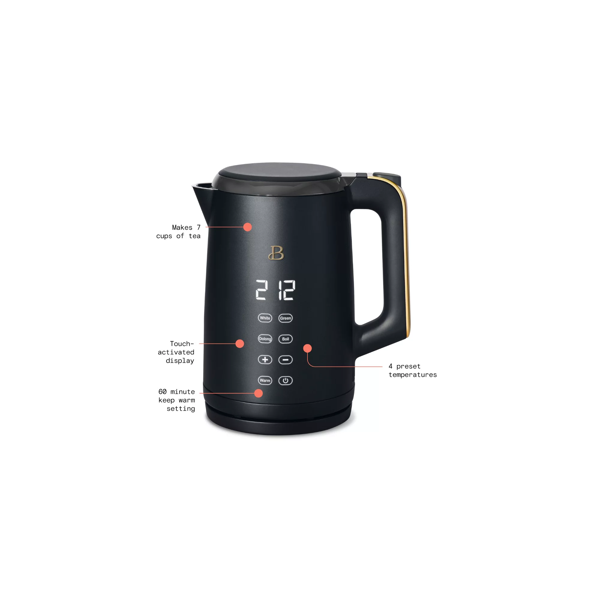 Beautiful 1.7L One-Touch Electric Kettle. Black Sesame by Drew Barrymore (Black)