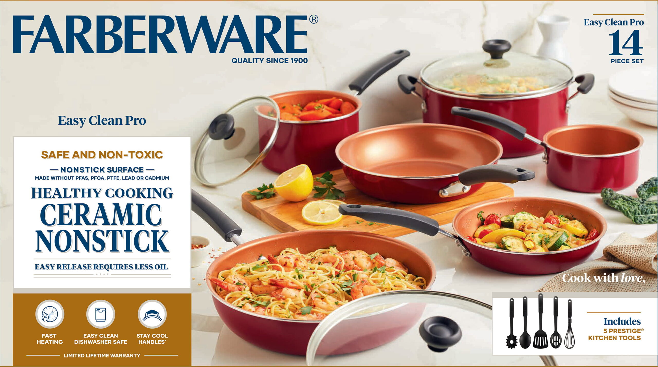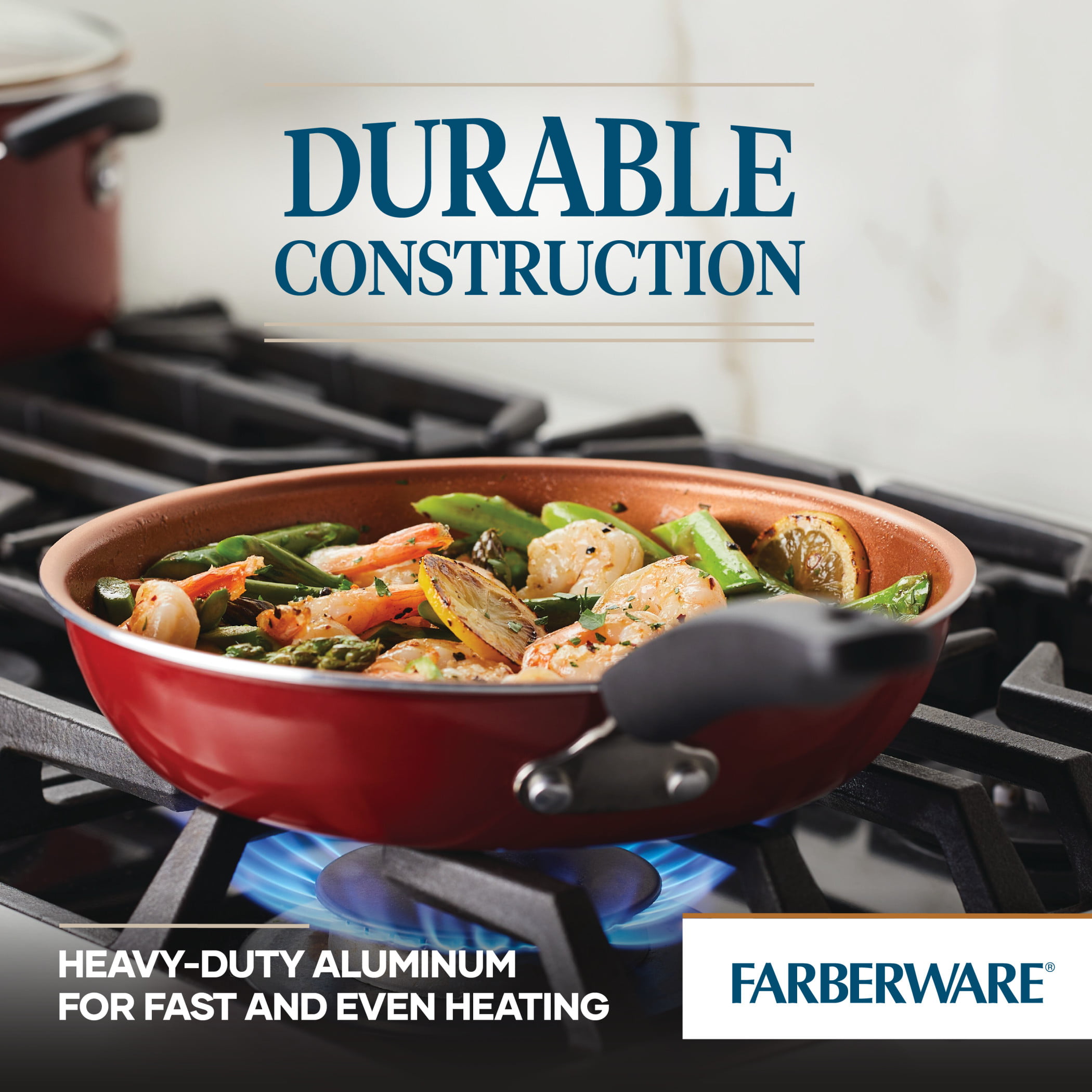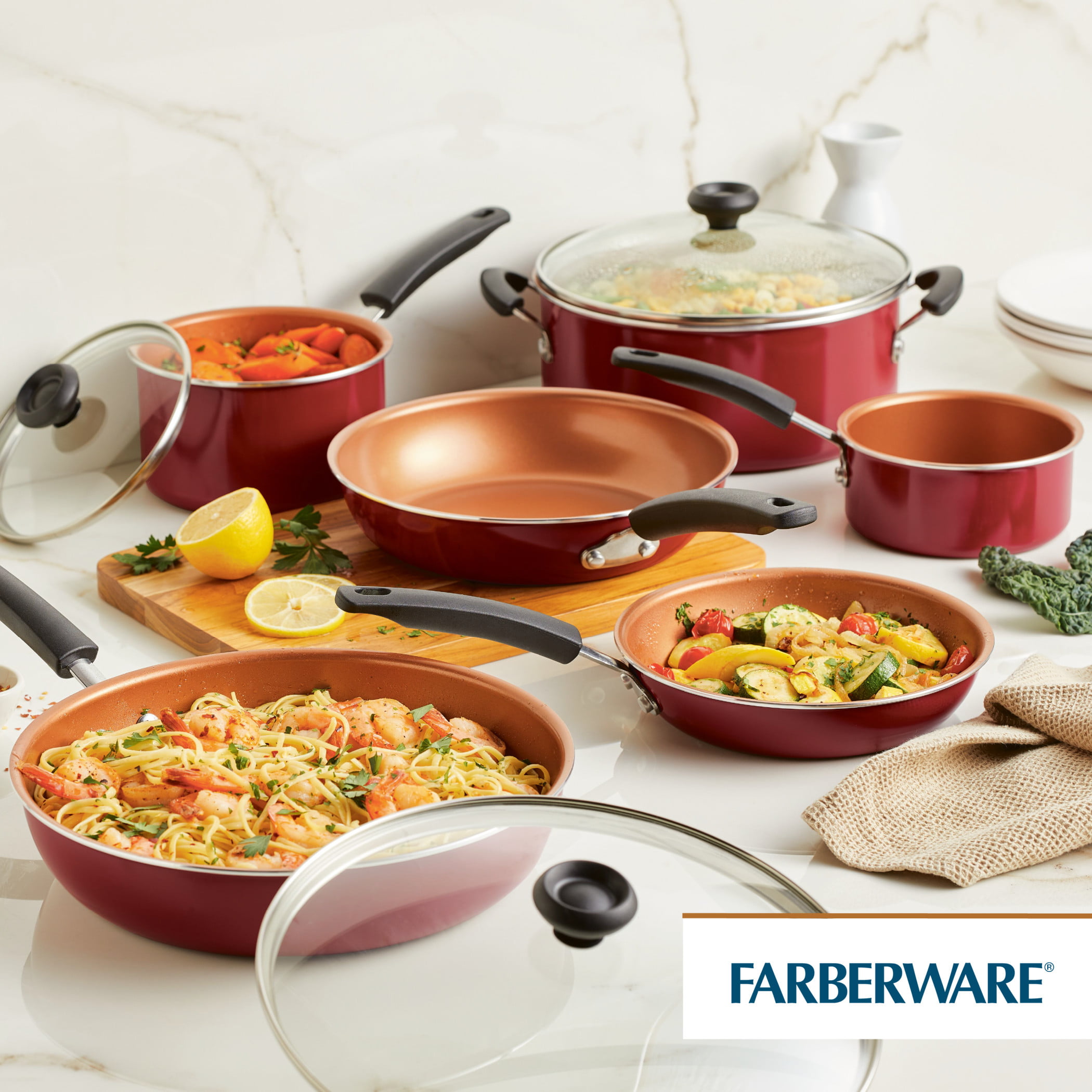 Farberware Easy Clean Pro Aluminum Nonstick Cookware Pots and Pans Set. 14-Piece. Red