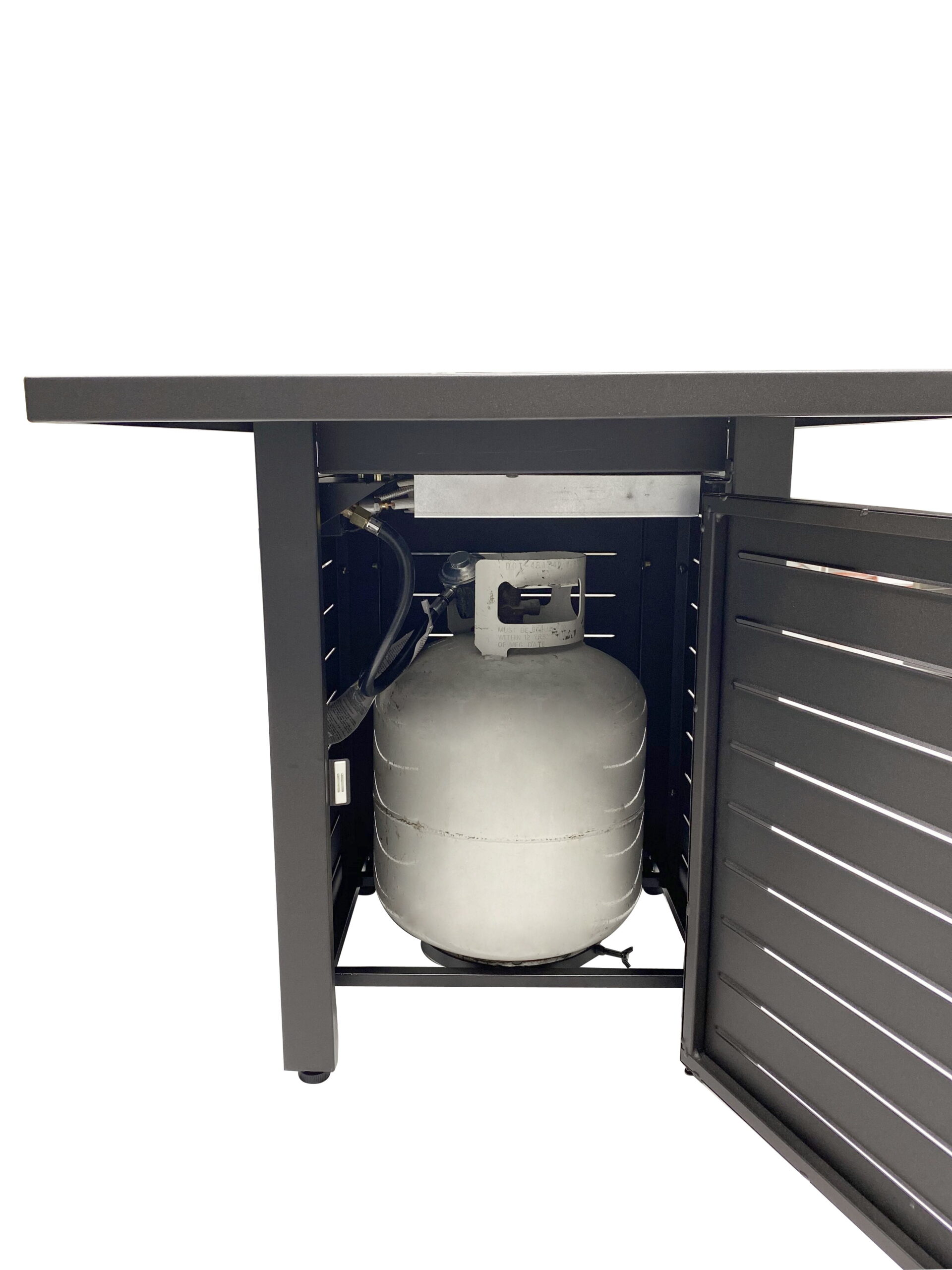 Mainstays 28″ Square 50000 BTU Propane Gas Fire Pit Table with Lava Rocks. Metal Lid and Protective Cover