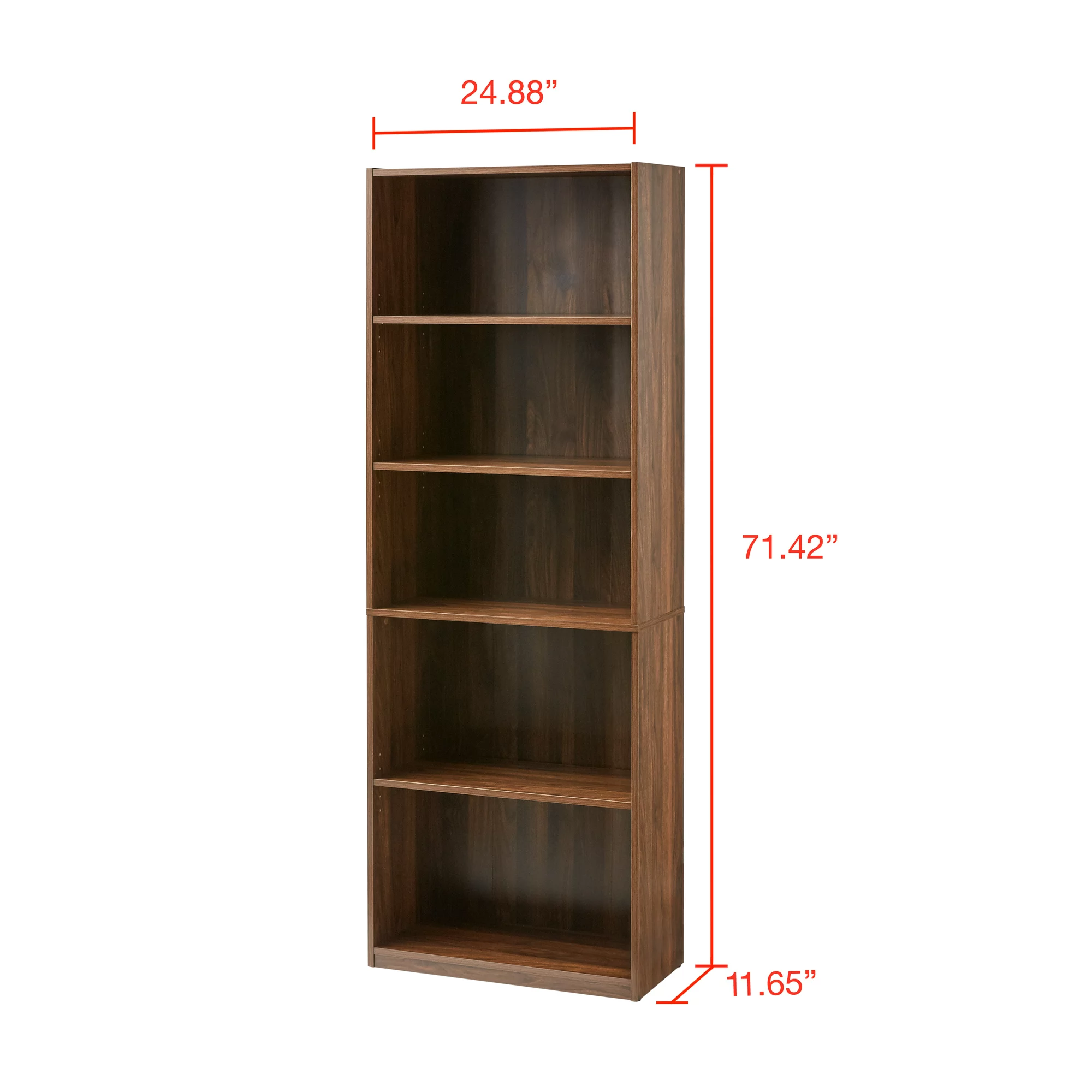 Mainstays 5-Shelf Bookcase with Adjustable Shelves. Canyon Walnut