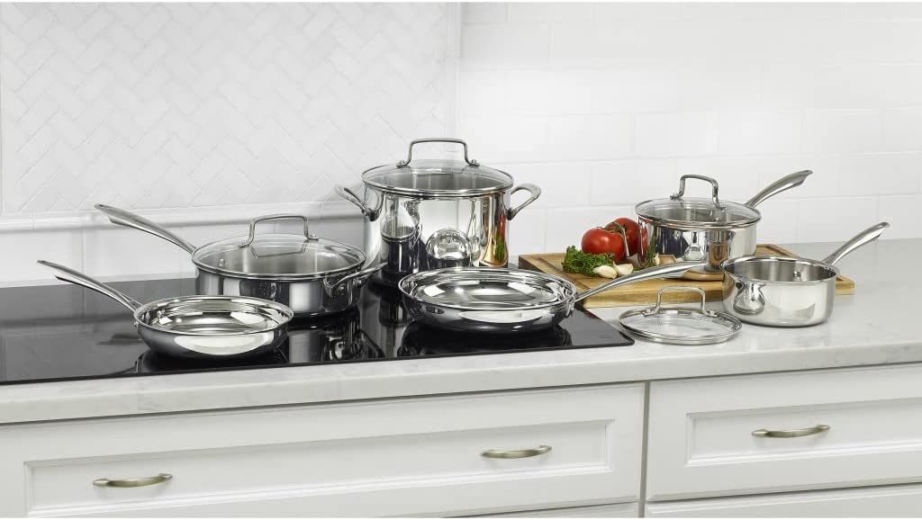 Cuisinart TPS-10 Professional Performance Tri-Ply 10-Piece Classic Cookware Set. Heat Surround Technology. Drip Free Pouring with Cool Grip Handles. Stainless Steel
