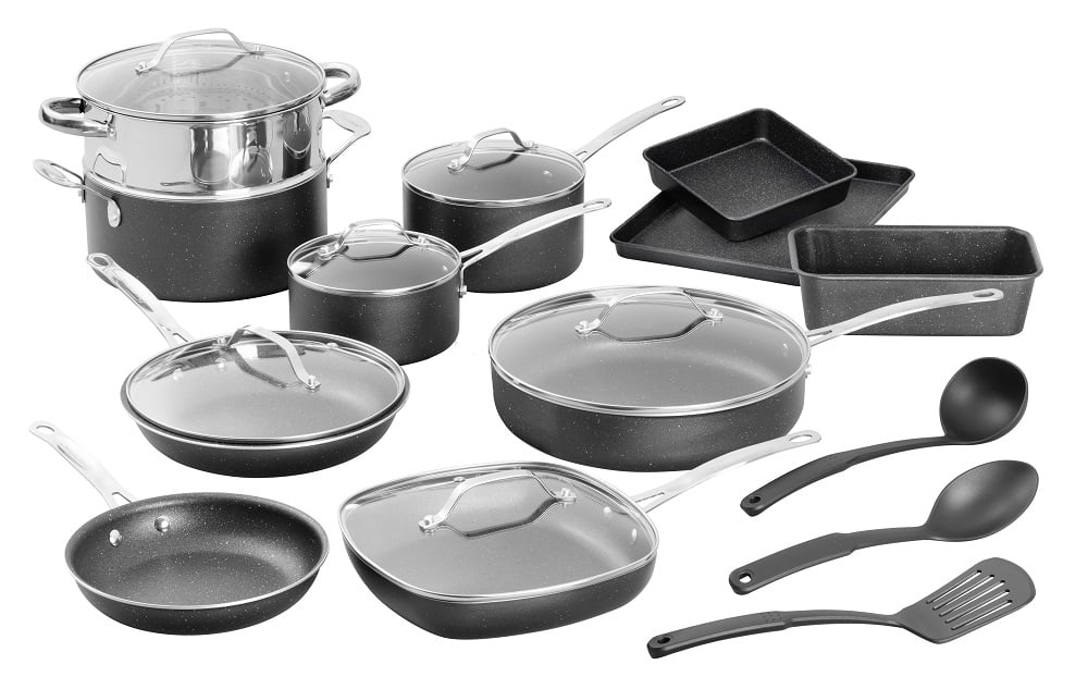 Granite Stone Pots and Pans Set 20 Piece Complete Cookware Bakeware Set Nonstick Dishwasher Oven Safe Black