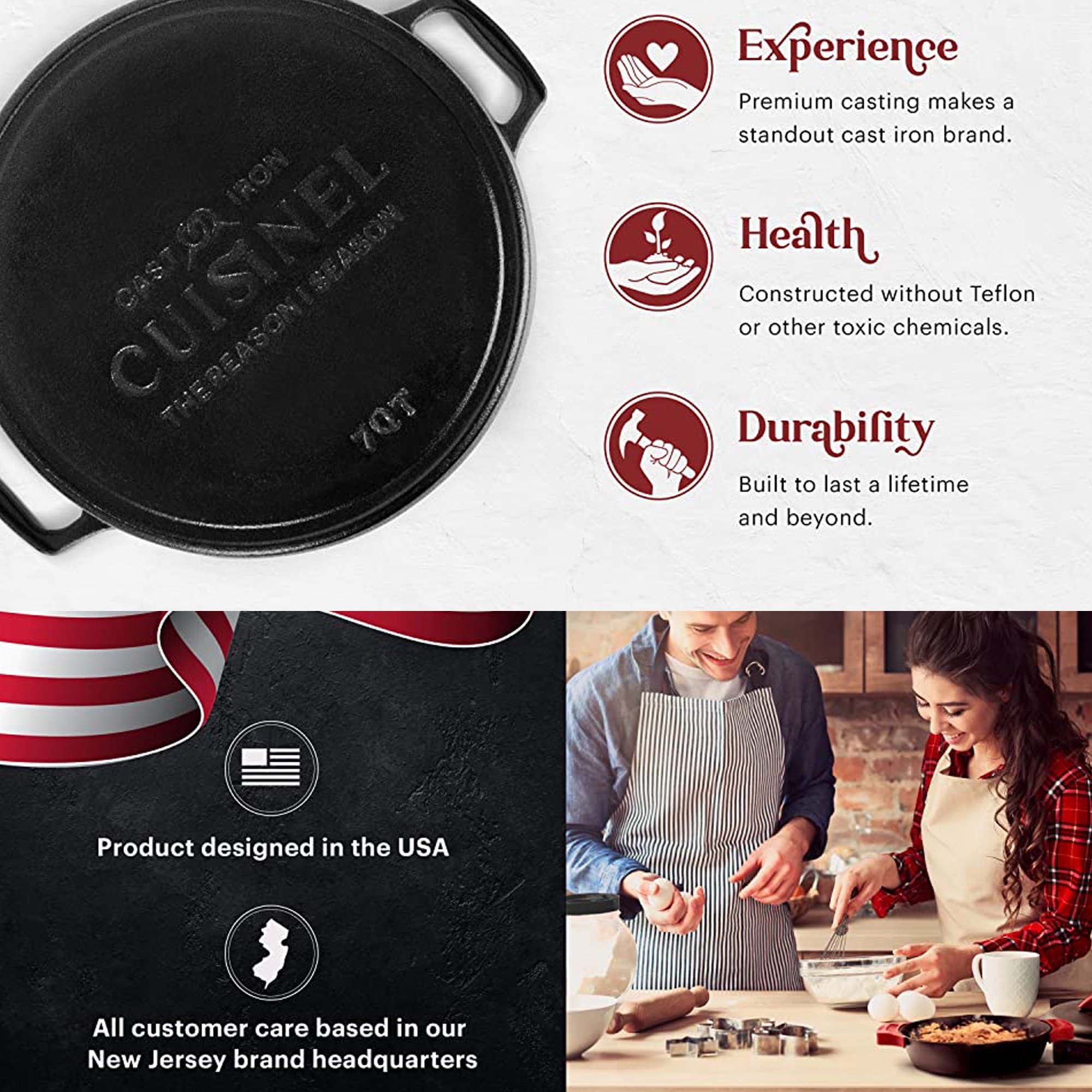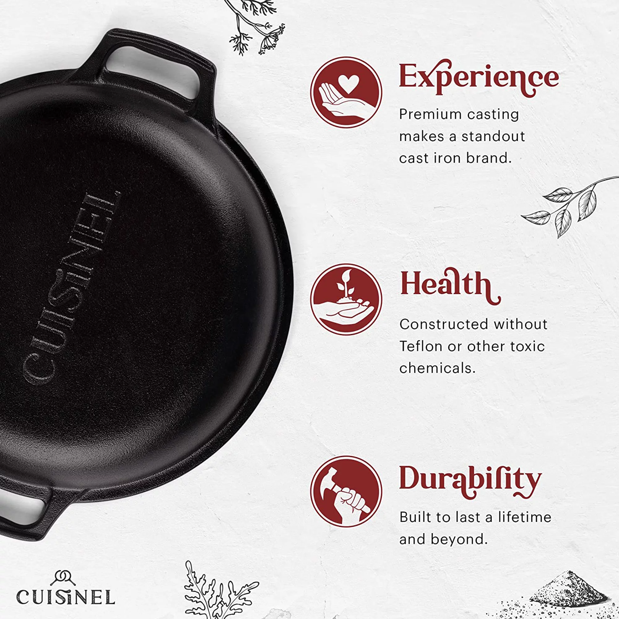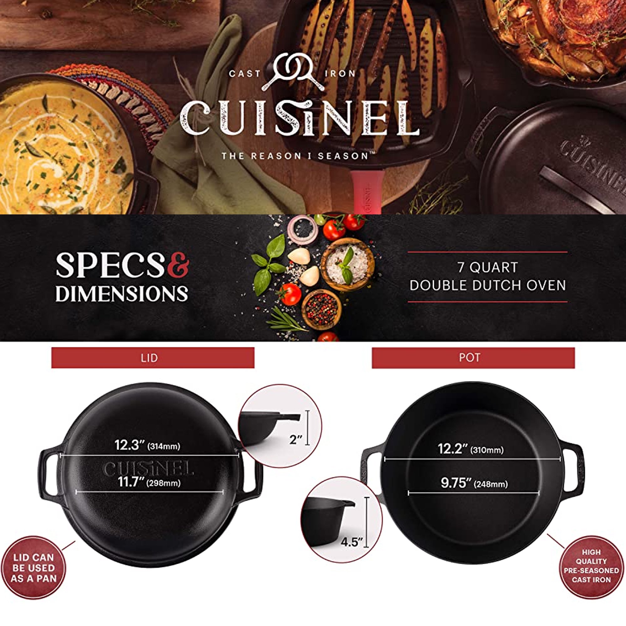 Cuisinel Cast Iron Pot with Lid 2-in-1 Multi Cooker Pre-Seasoned Dutch Oven 7 Quarts