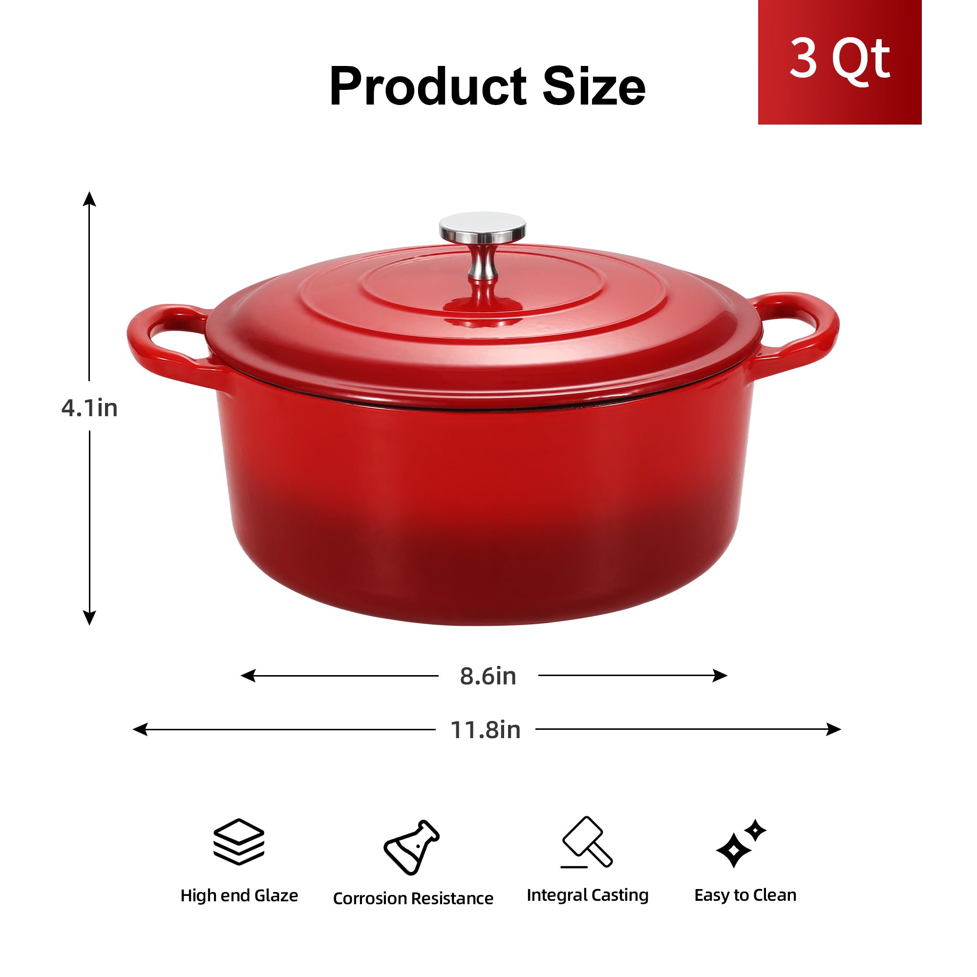Scafild | 3-Quart Round Enamelled Cast Iron Dutch Oven - Red