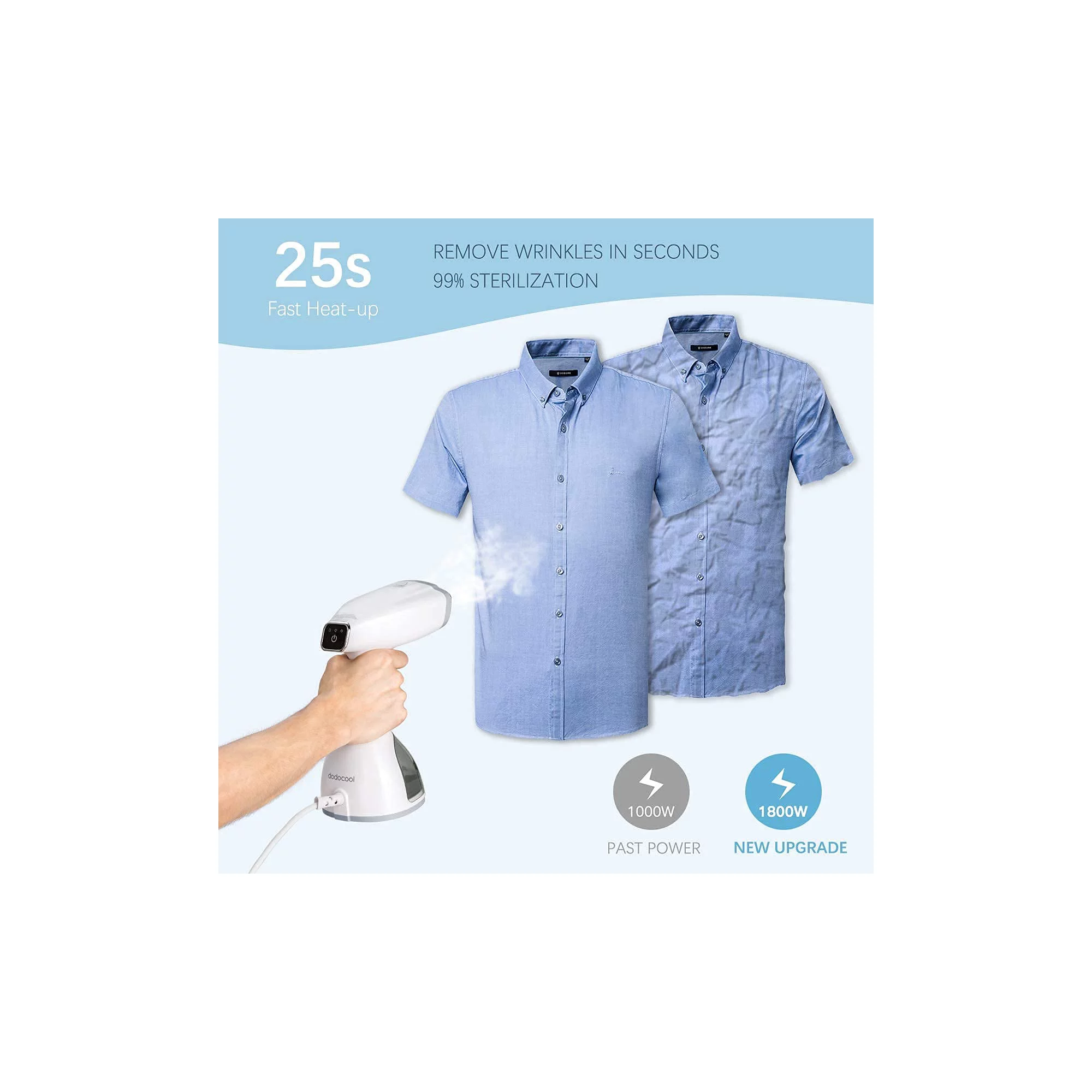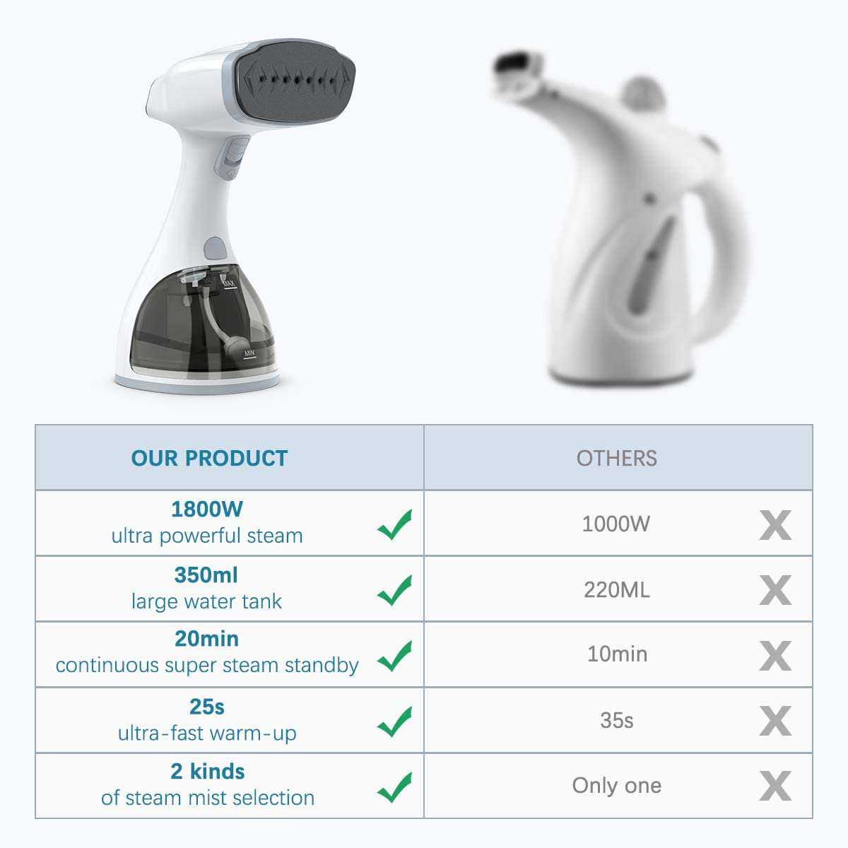 Homuserr Handheld Garment Steamer 1800W 20s Heat Up Steamer for Clothes with LCD Smart Screen. 2 Steam Options Fabric Steamer. Upgraded Nozzle and 350ml Water Tank