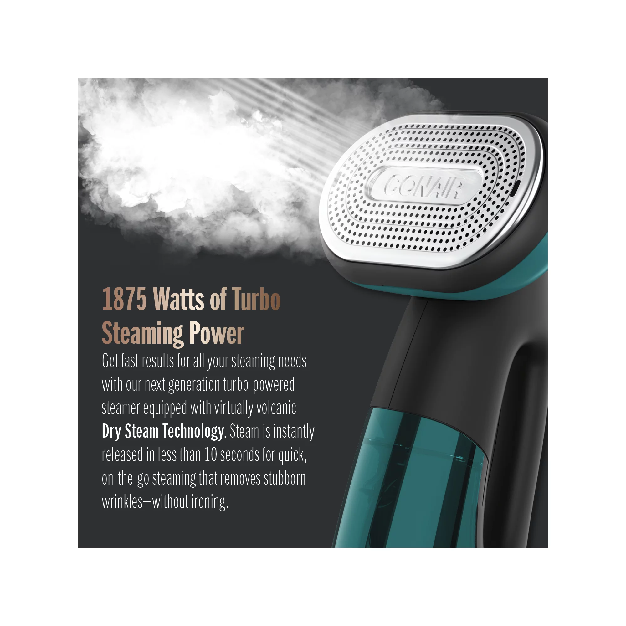 Conair GS107 Turbo ExtremeSteam 1875 Watt Handheld Fabric. 2-in-1 Steam and Iron Garment Steamer. One Size. Black/Green