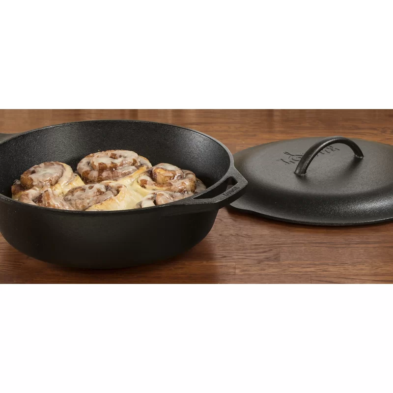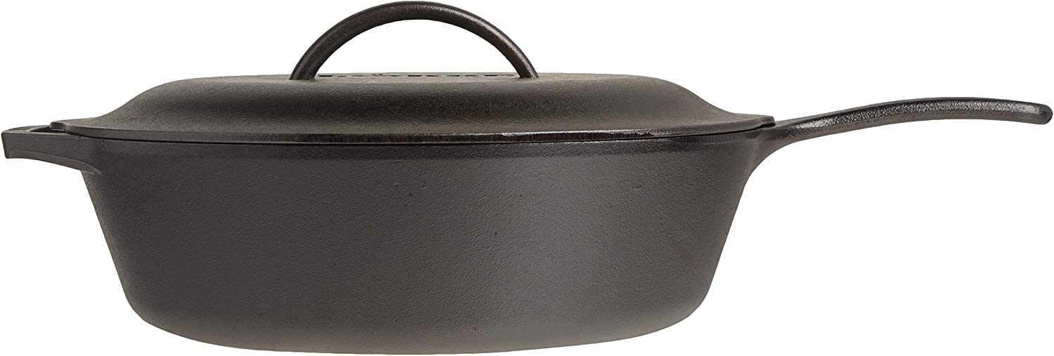 Lodge L10CF3 Cast Iron Covered Deep Skillet. Pre-Seasoned. 5-Quart