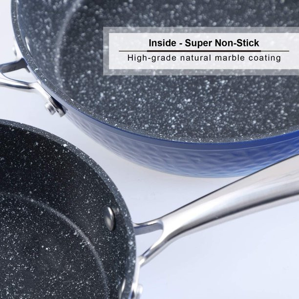 MF Studio 15 Piece Induction Kitchen Cookware Sets Nonstick - Granite Hammered Pan Set