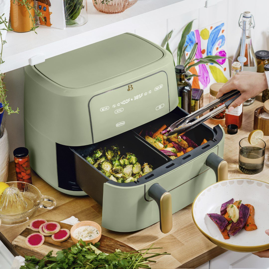 Beautiful 9 Qt. TriZone Air Fryer by Drew Barrymore. Sage Green