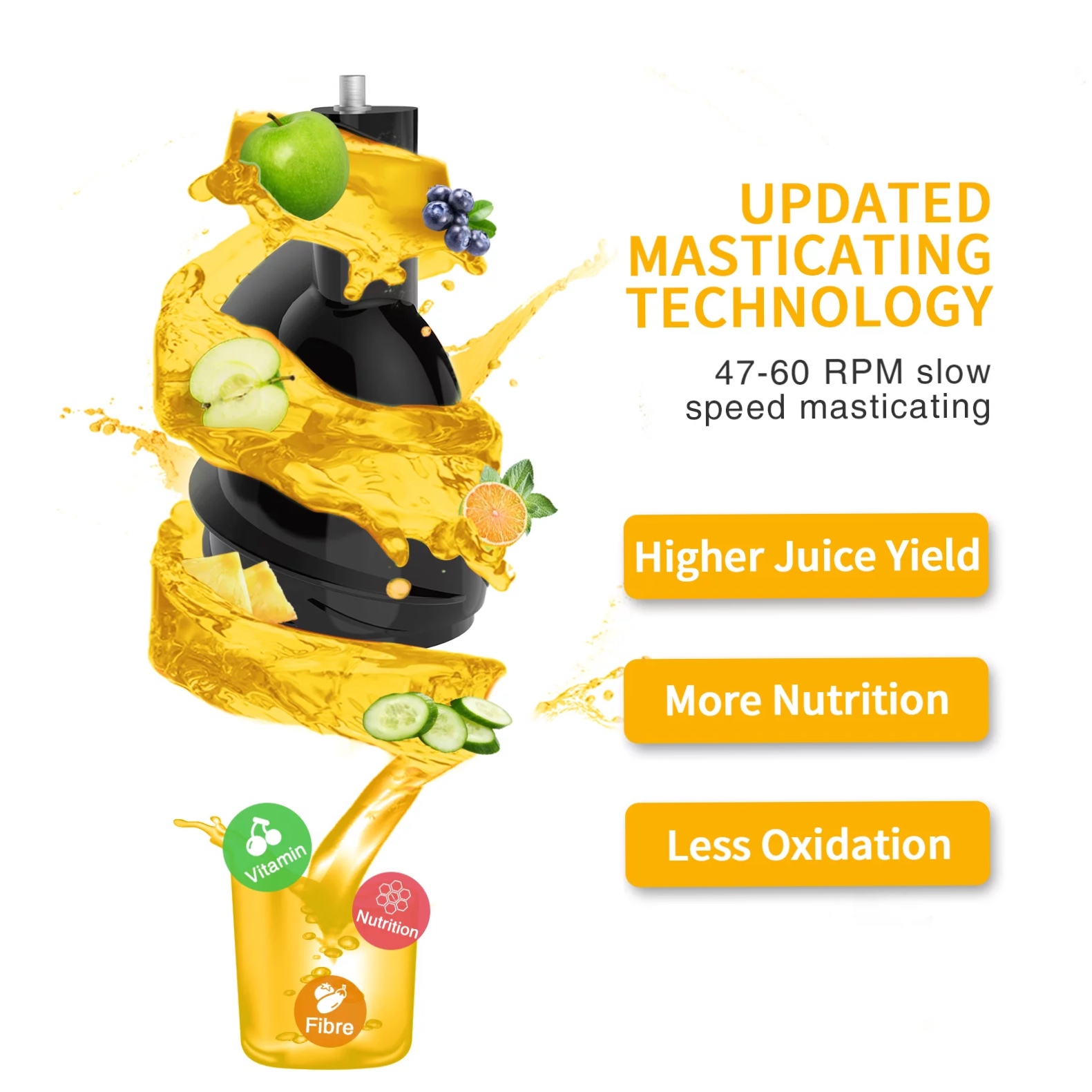 Aeitto HSJ8824 Slow Masticating Juicer Machine. Wide-Mouthed 3.2-in Chute Cold Press Juicer