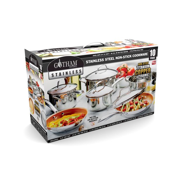 Gotham Steel Premium Tri-Ply Stainless Steel Pots And Pans Set. 10 Pieces