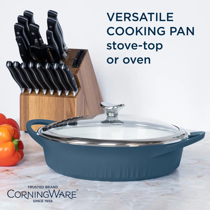 CorningWare 1143629 4 Qt. CorningWare Cast Aluminum Braiser with Lid Blue
