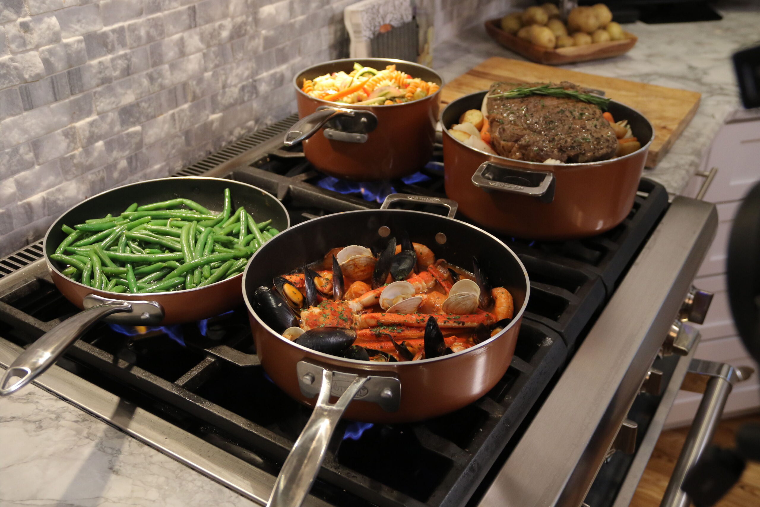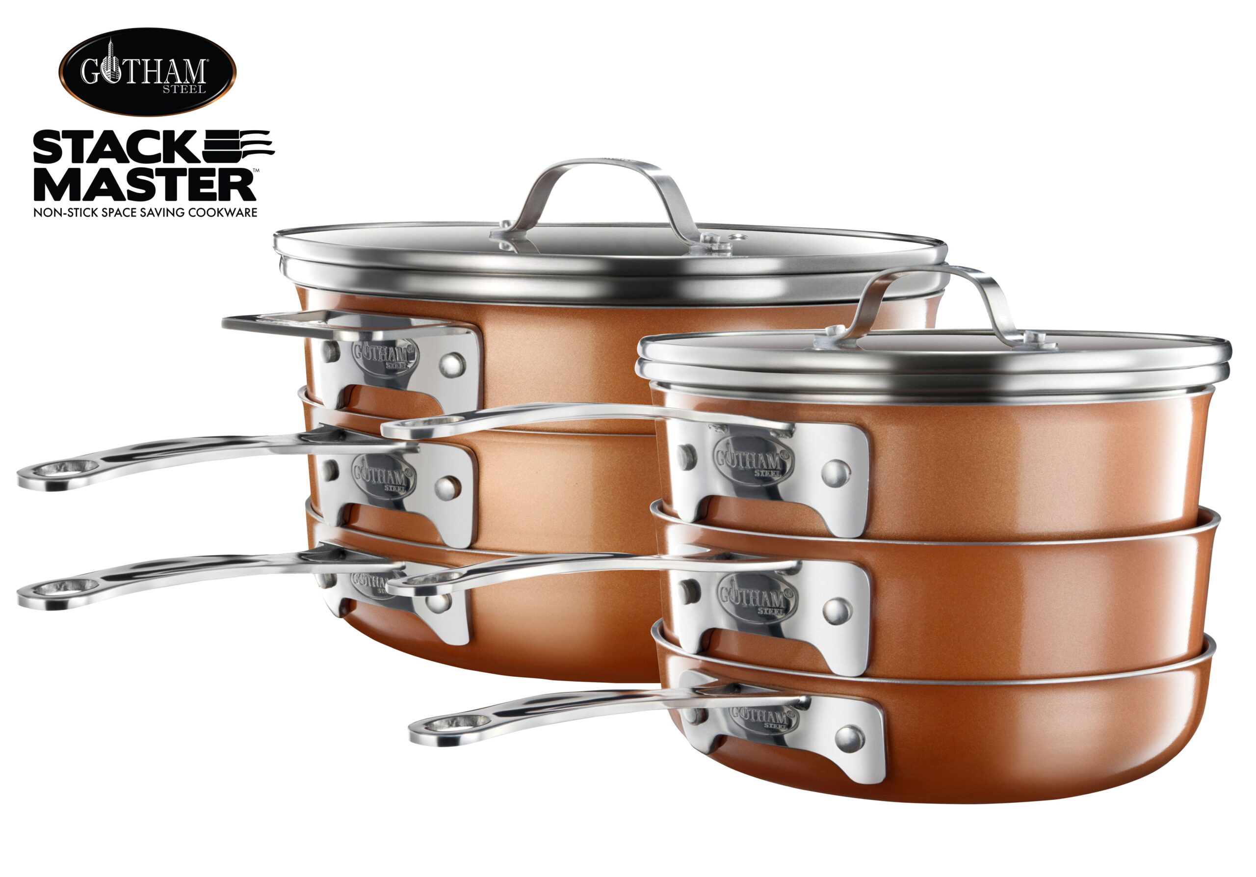 Gotham Steel Stackable Non-stick 5 Piece Copper Cast Stackable Pots & Pans Set. Gold