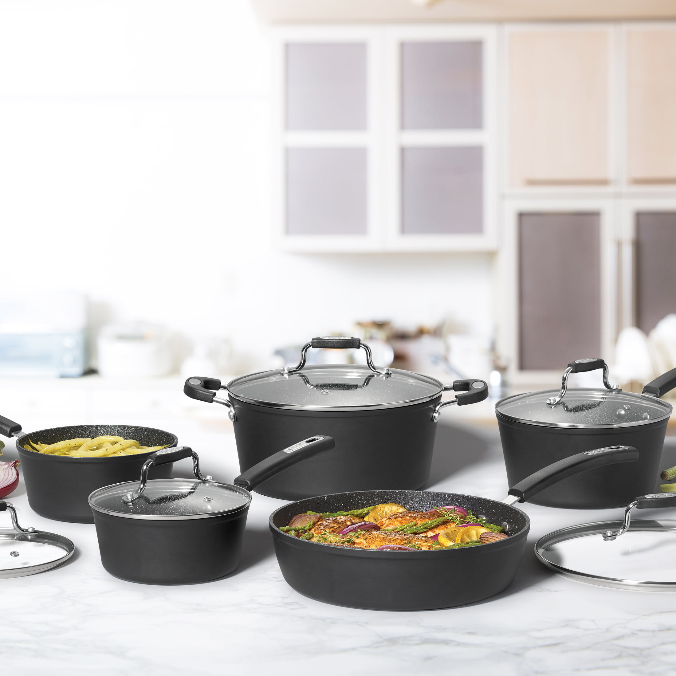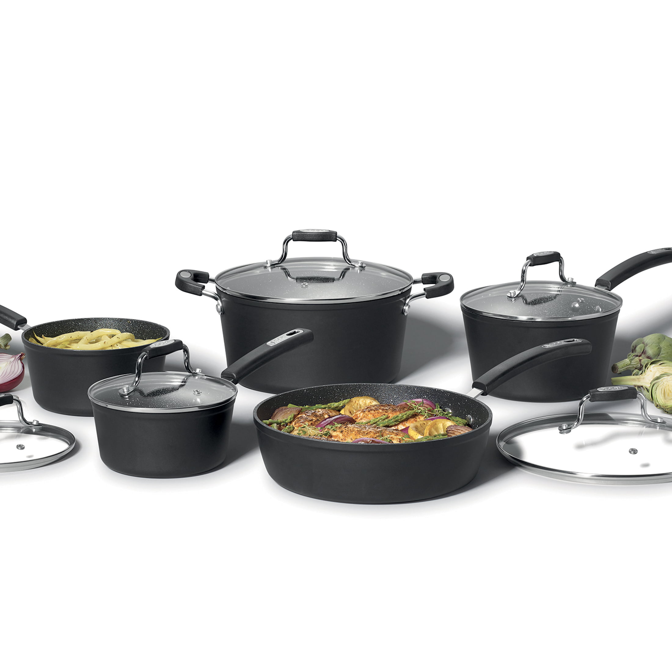 Starfrit The Rock Essential 10 Piece Non-Stick Cookware Set. Black