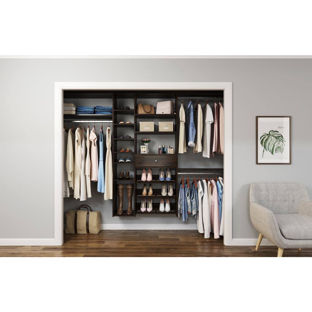 Closet Evolution TR25 Essential 60 in. W - 96 in. W Espresso Wood Closet System