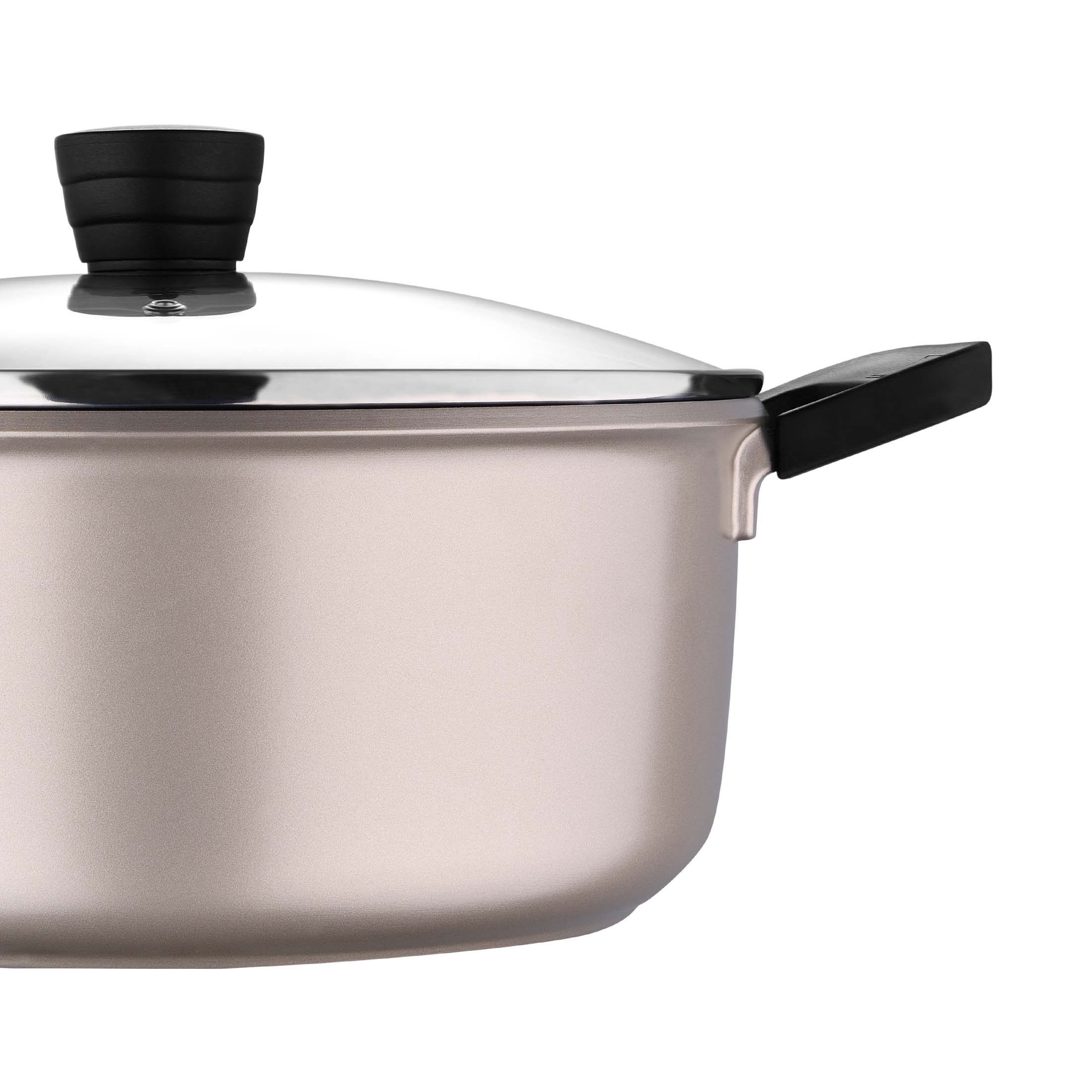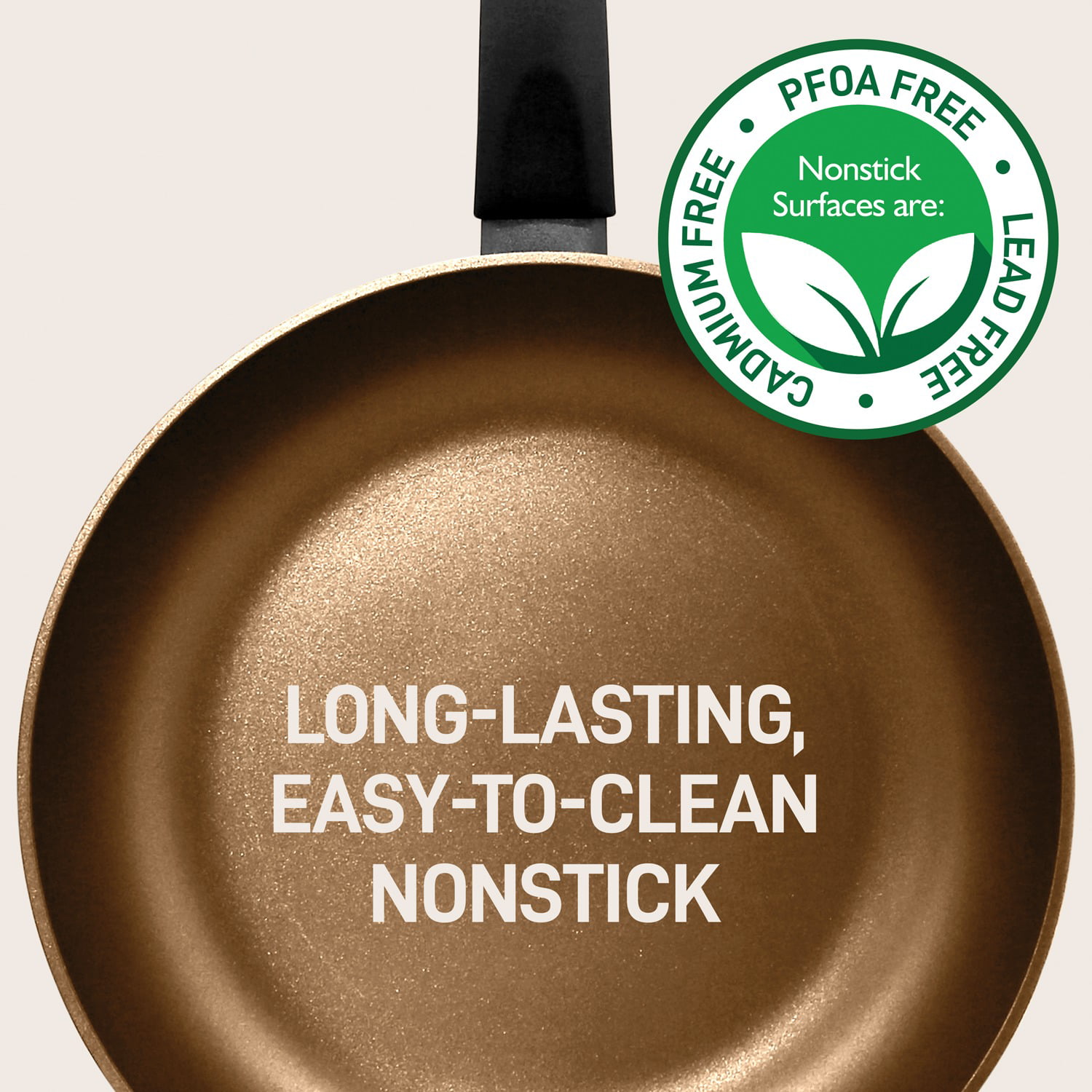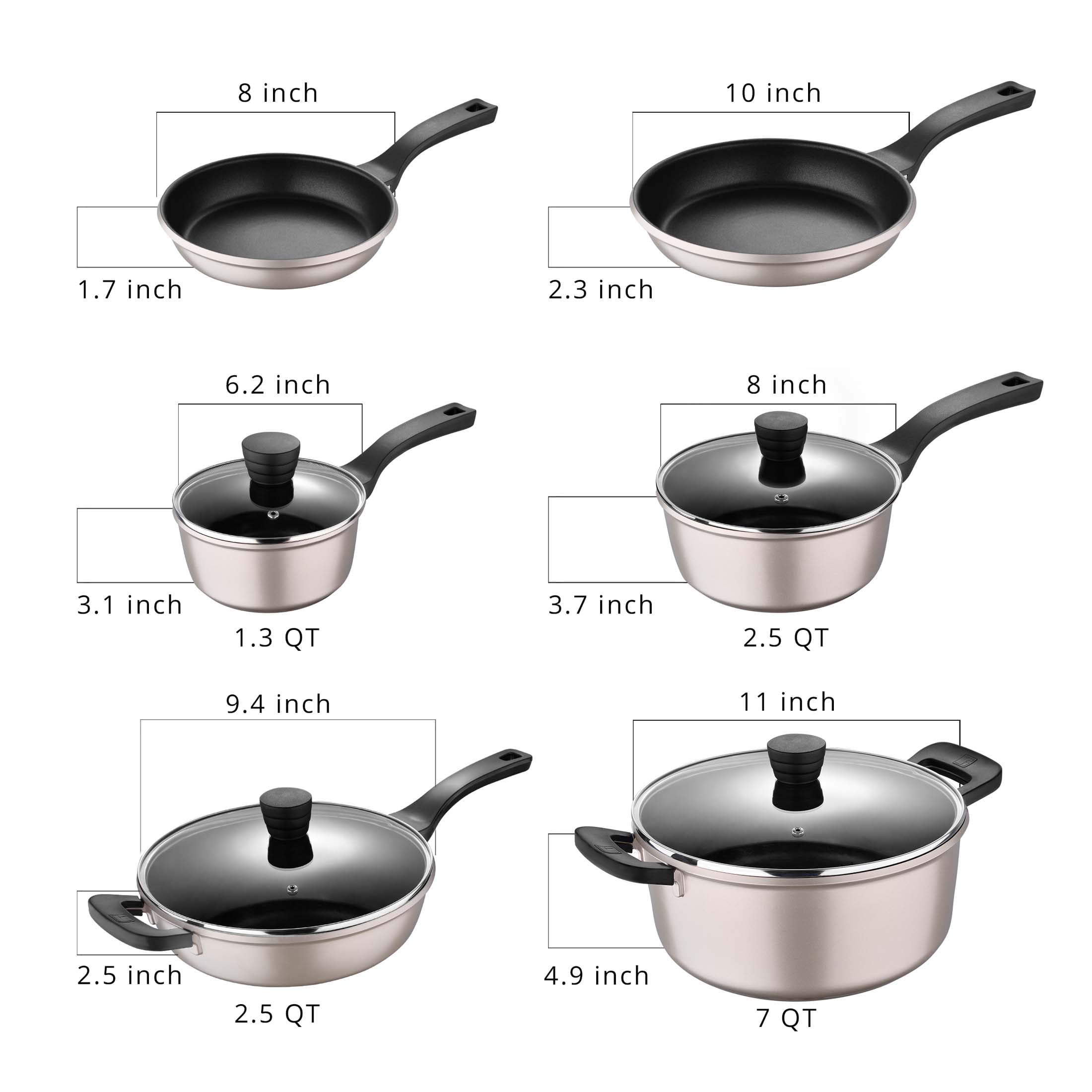 Retro by Bergner - 10 Pc Non Stick Cast Aluminum Pots and Pans Cookware Set. 10 Pieces. Champagne