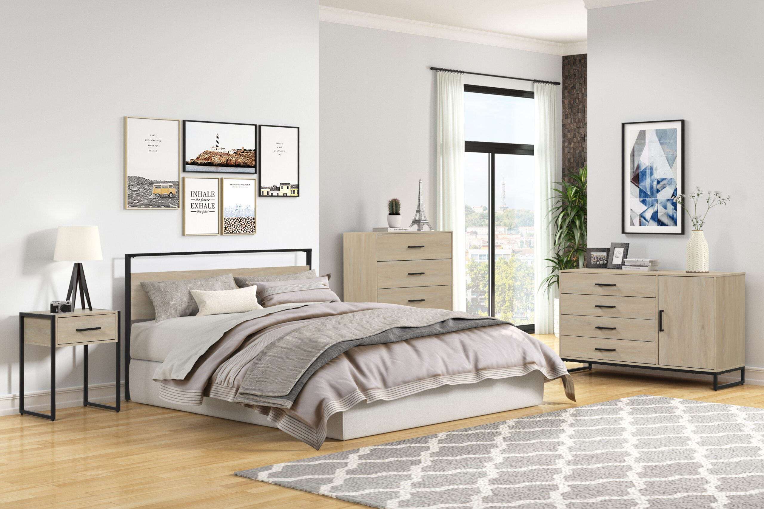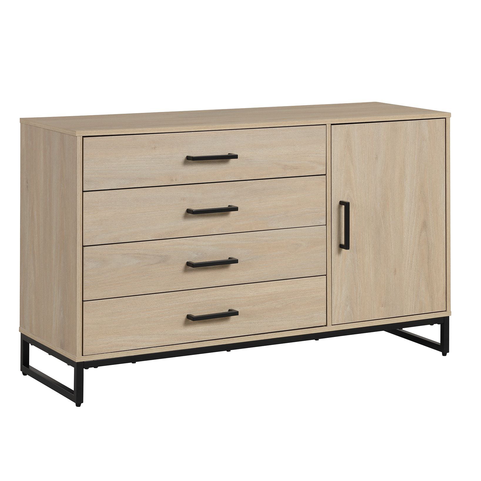 Mainstays Industrial 4 Drawer Dresser W/ Door Cabinet. Beige Oak