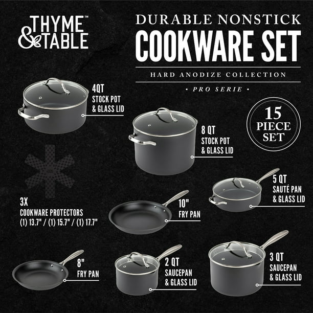 Thyme & Table Non-Stick 15-Piece Cookware Set Hard Anodized Aluminum