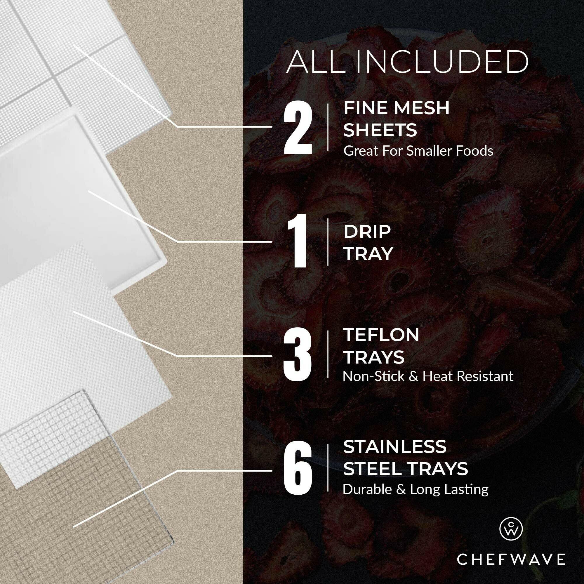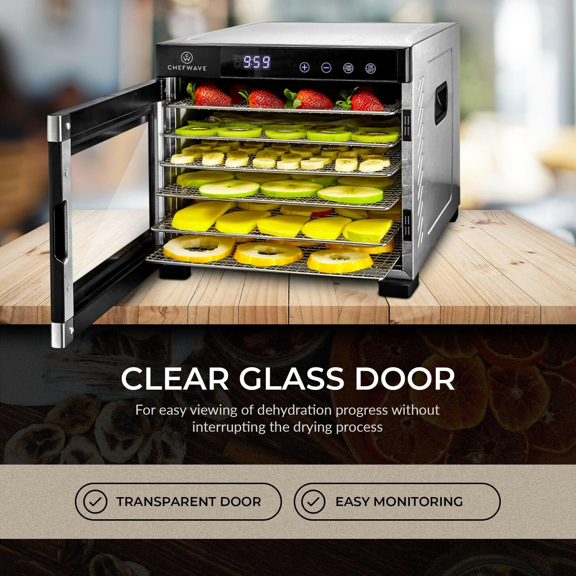 ChefWave CW-FD06 6 Tray Food Dehydrator with Stainless Steel Racks. Temp + Time Control