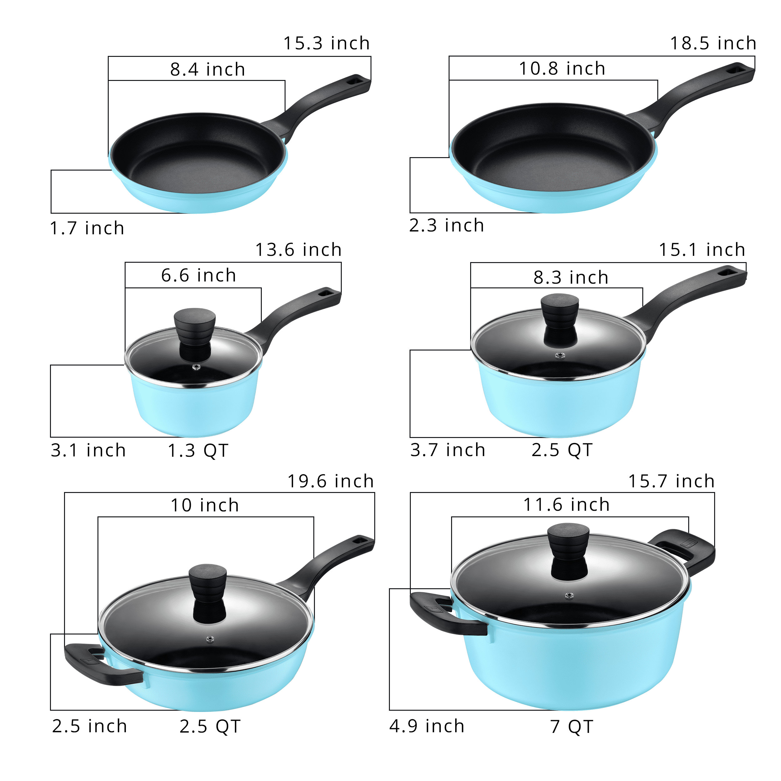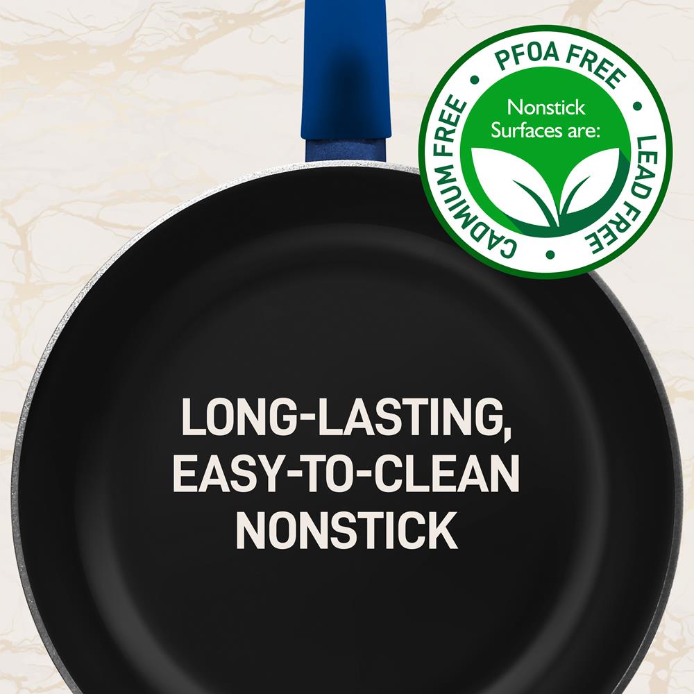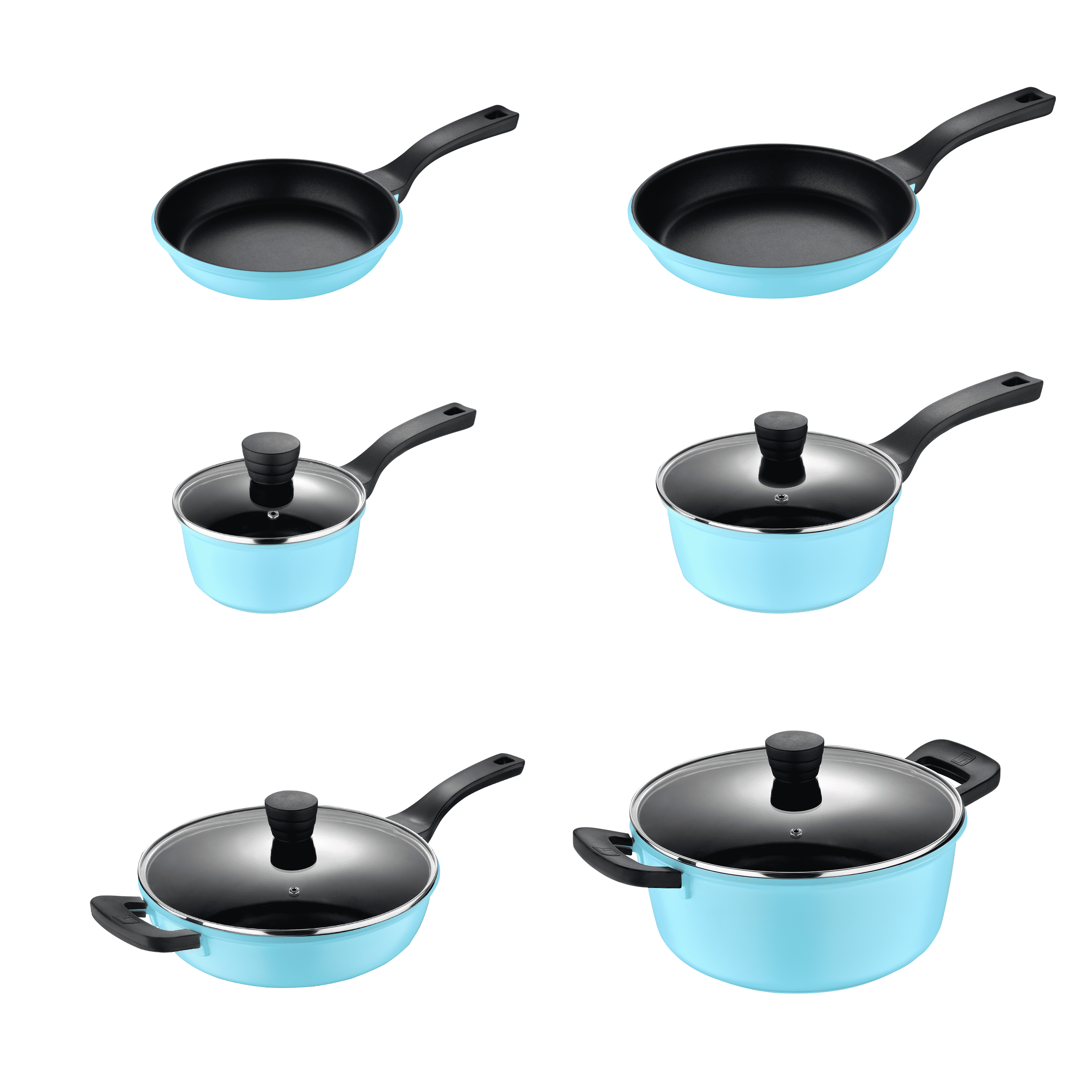 Retro by Bergner - 10 Pc Non Stick Cast Aluminum Pots and Pans Cookware Set. 10 Pieces. Blue