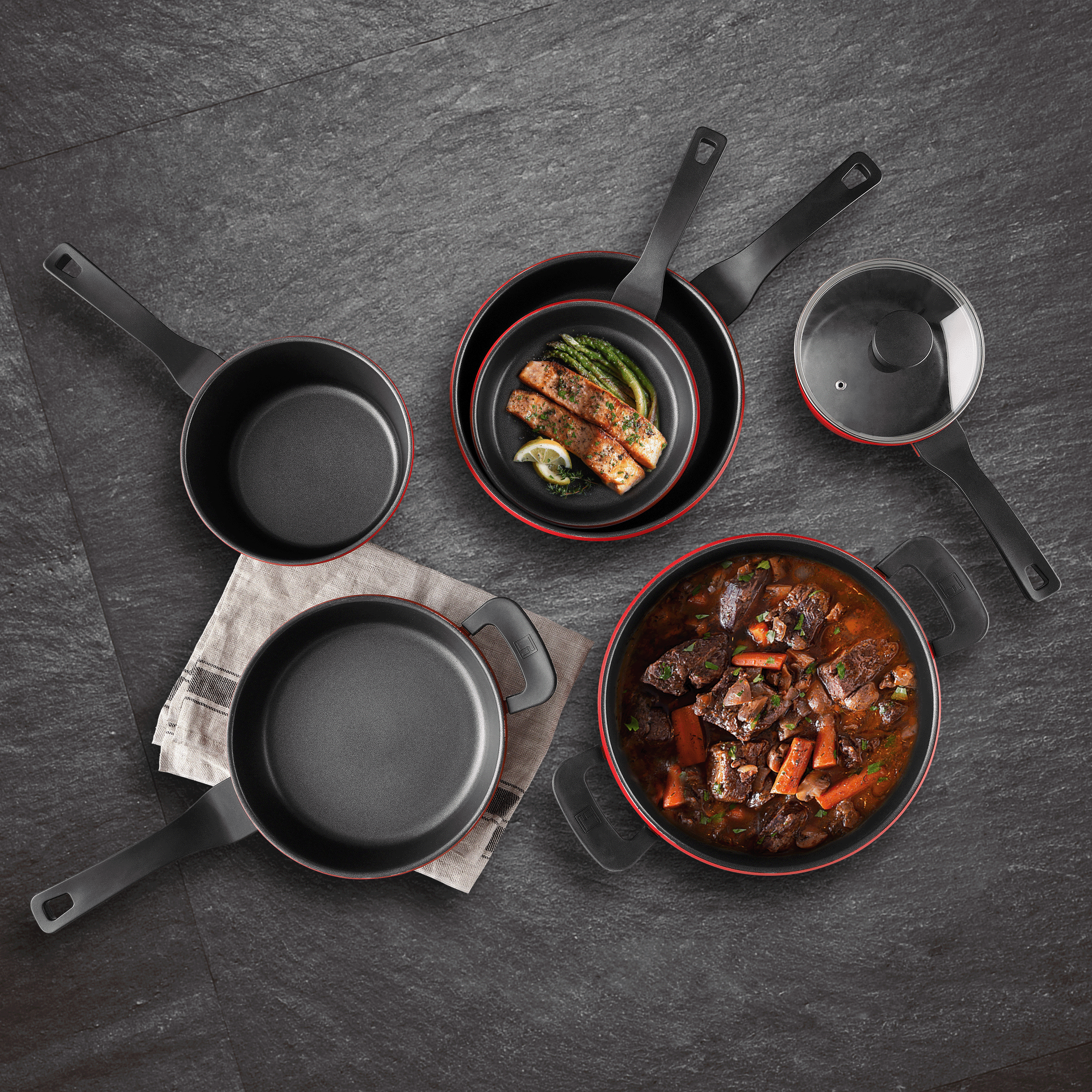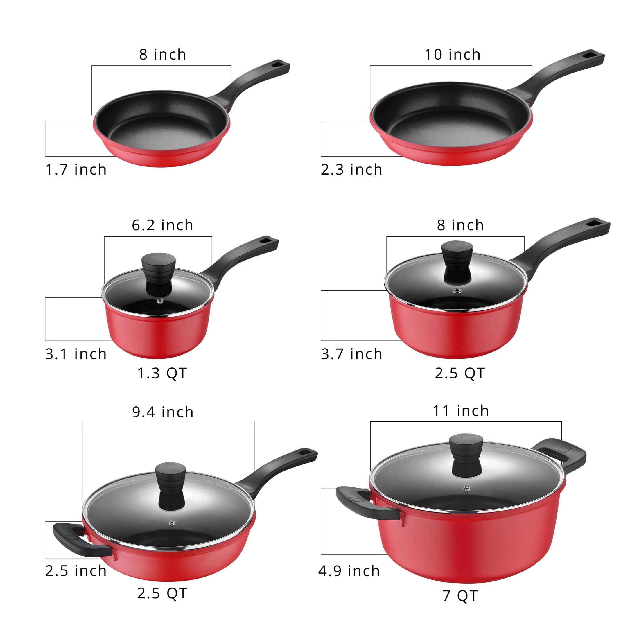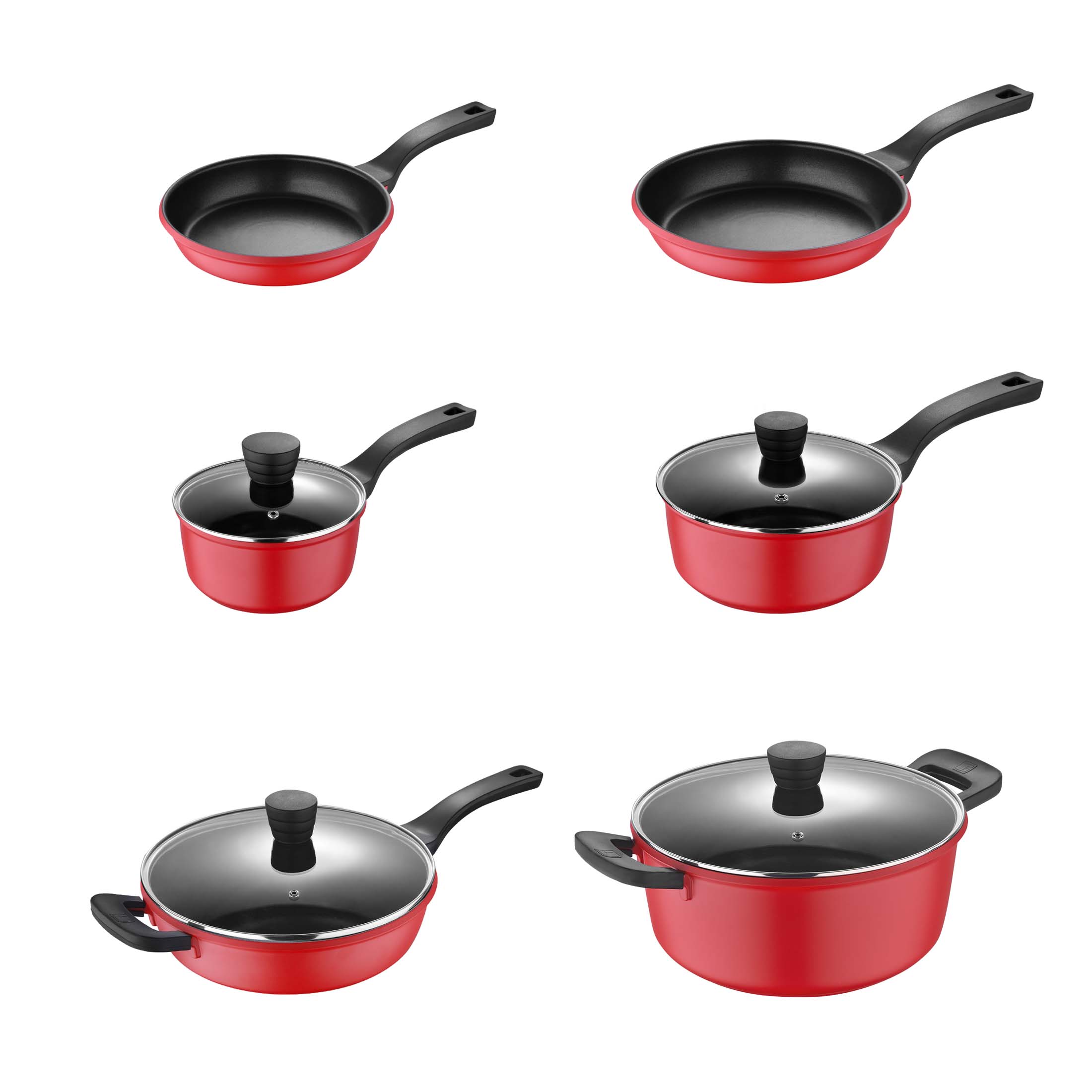 Bergner Retro Collection Cast Aluminum Nonstick Pots and Pans 10 Piece Cookware Set - Red