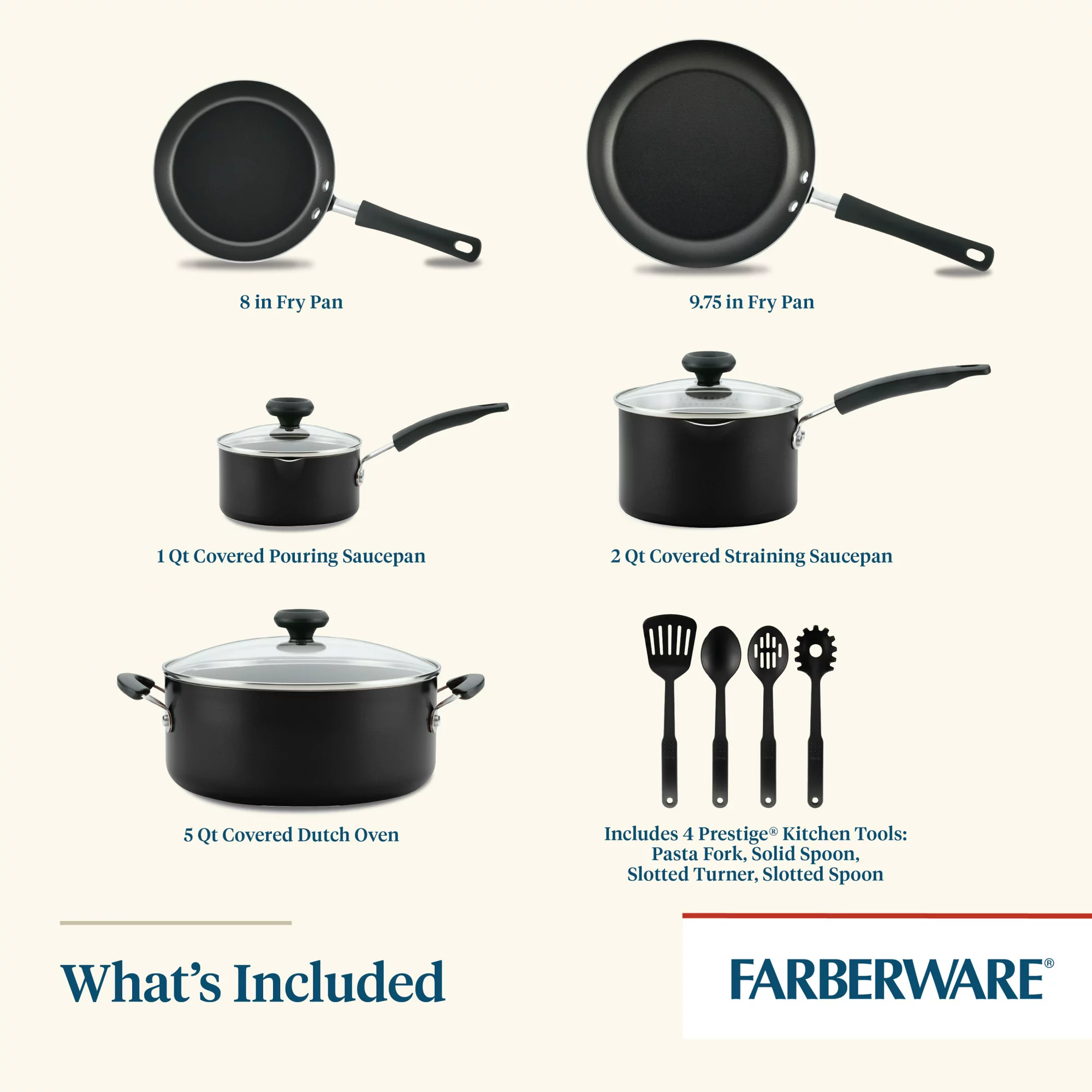 Farberware 12-Piece Easy Clean Nonstick Pots and Pans/Cookware Set. Black