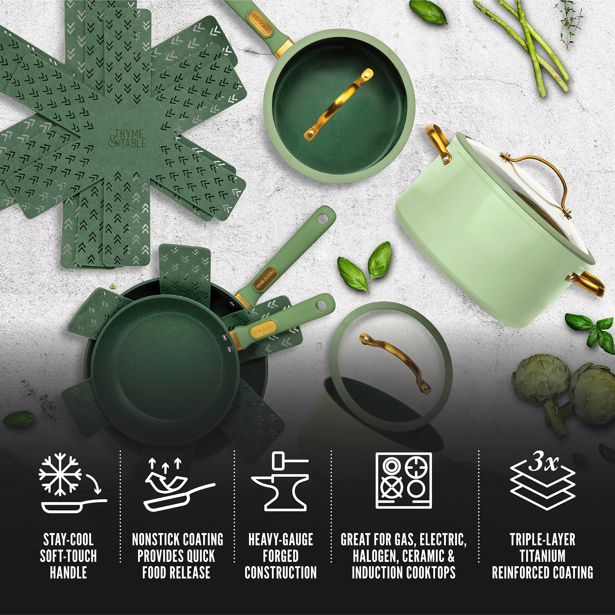 Thyme & Table Non-Stick 12-Piece Cookware Set. Green