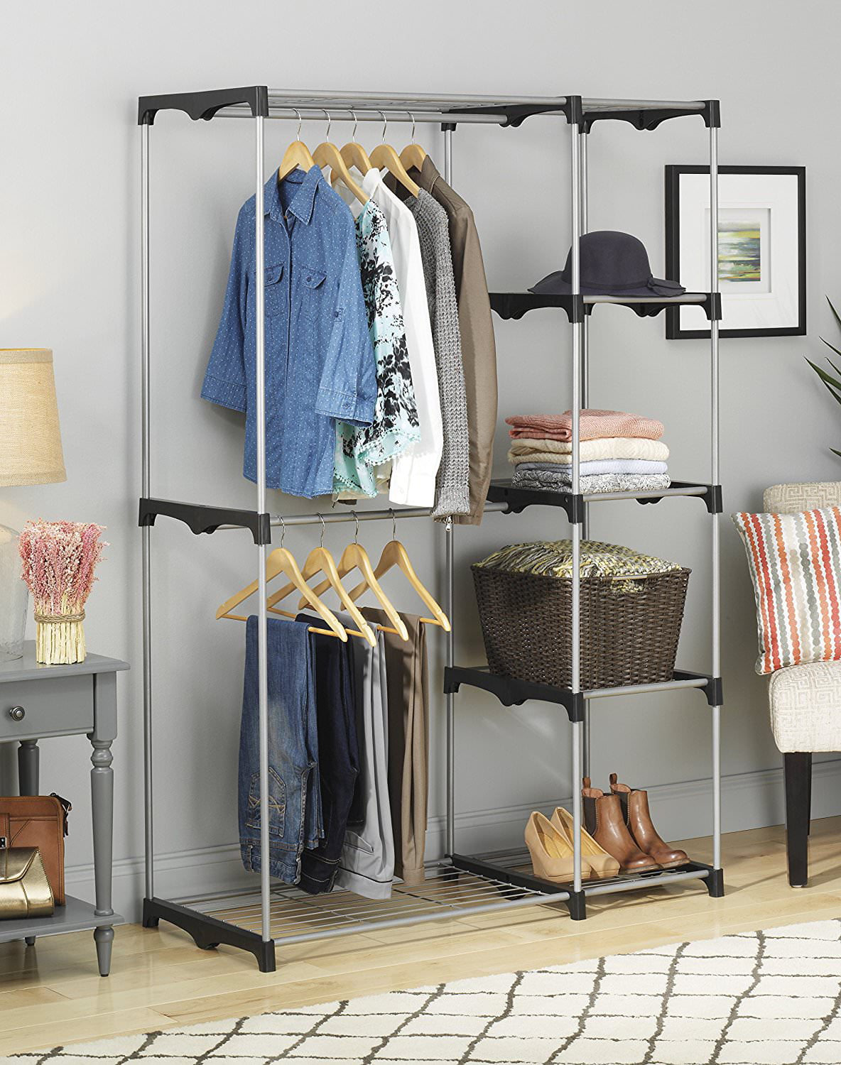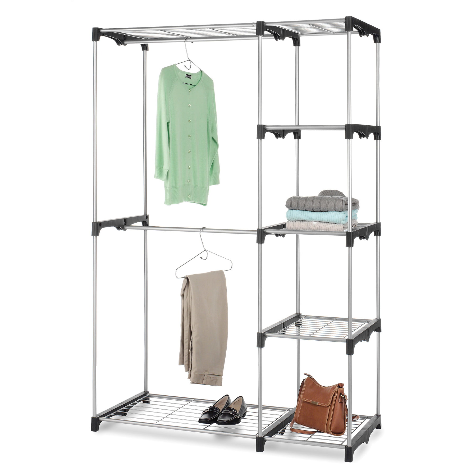 Whitmor Double Rod Closet System. Metal with Resin Connectors. Silver and Black