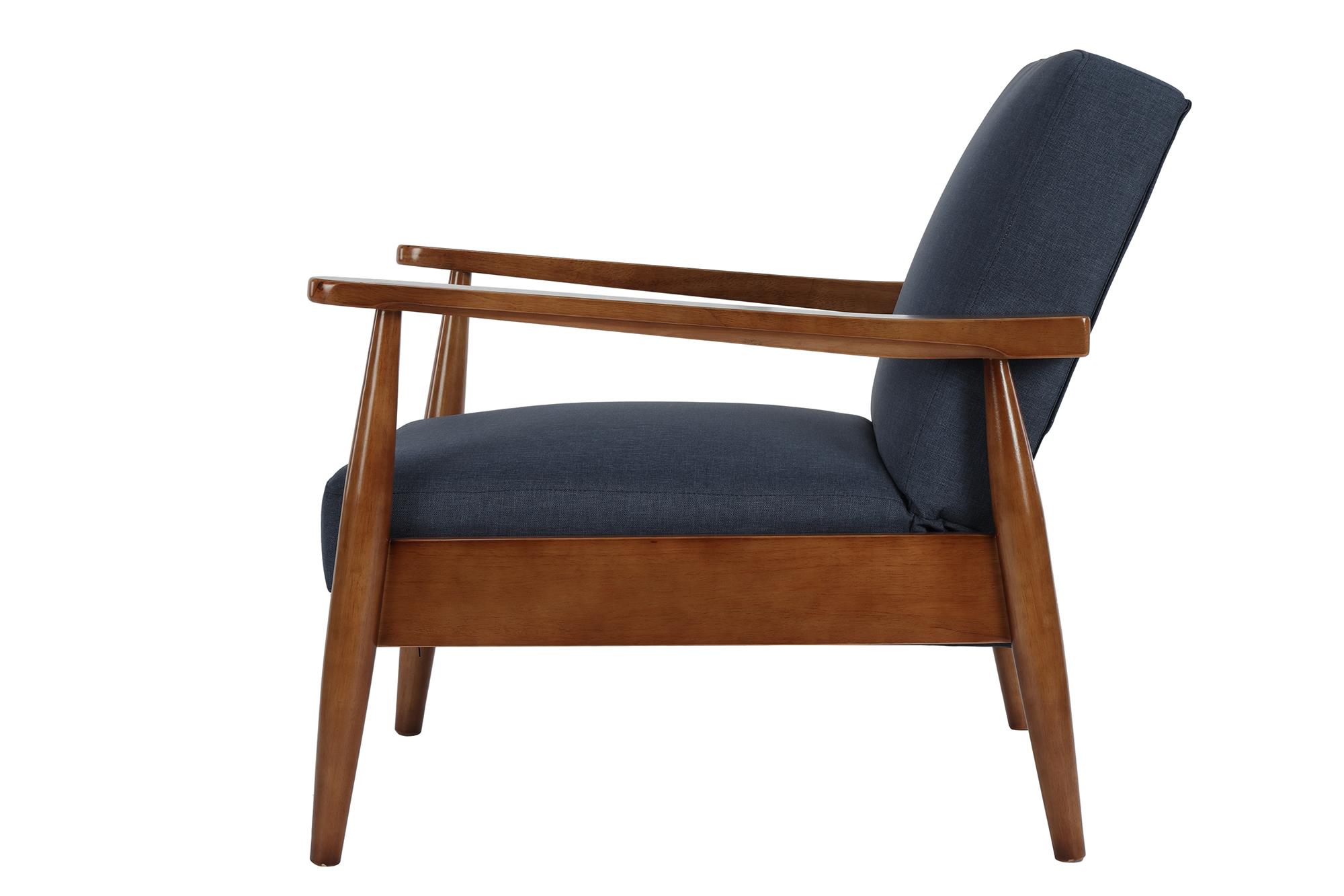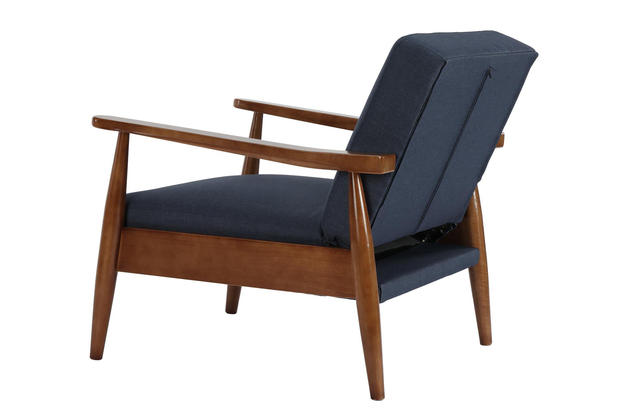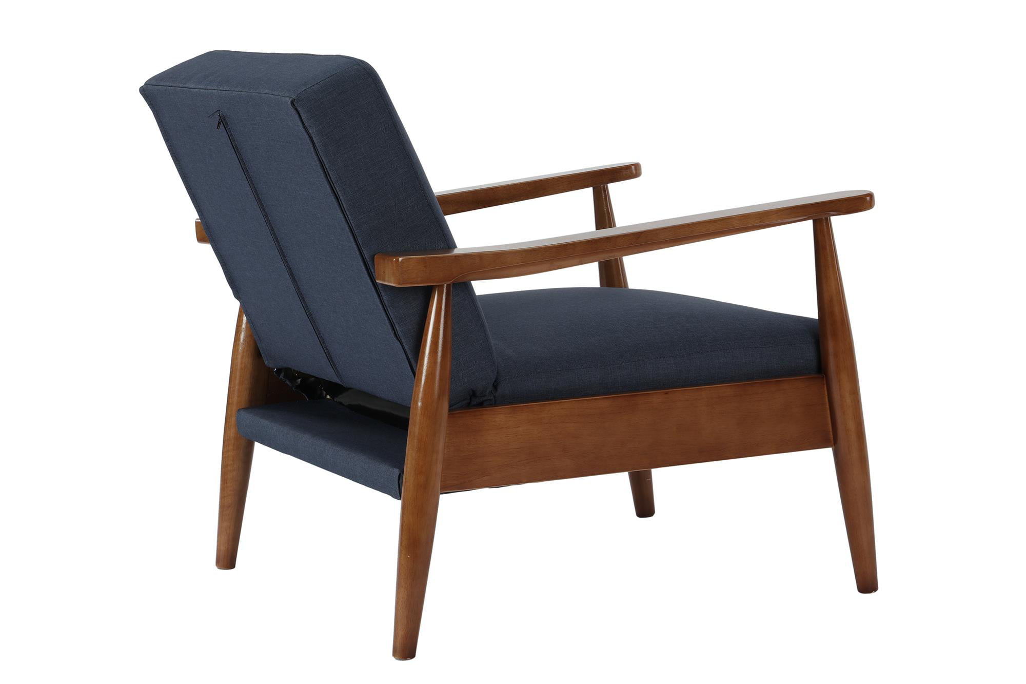 Better Homes & Gardens Mid Century Solid Wood Reclining Accent Chair with Upholstered Seat. Blue