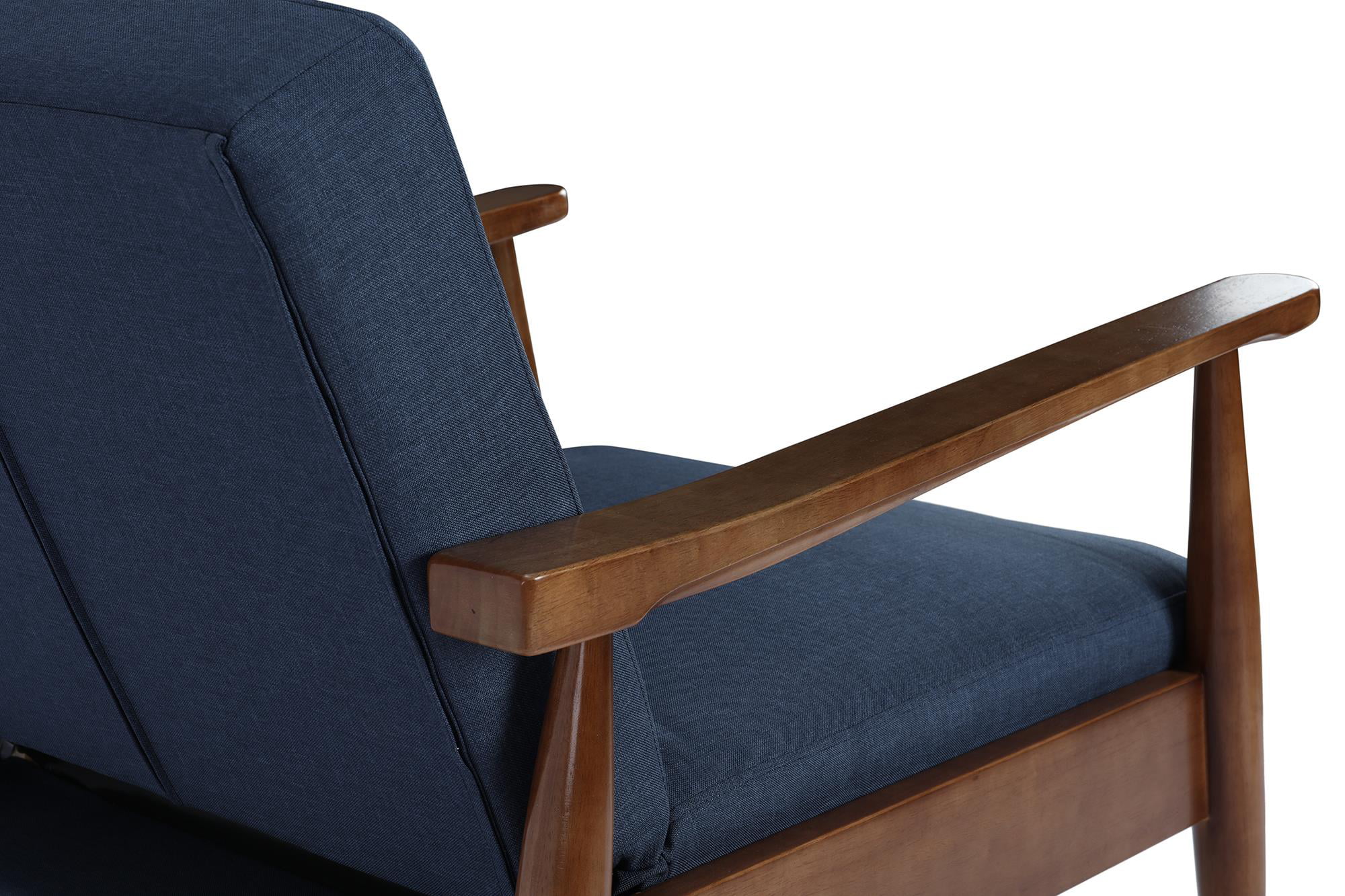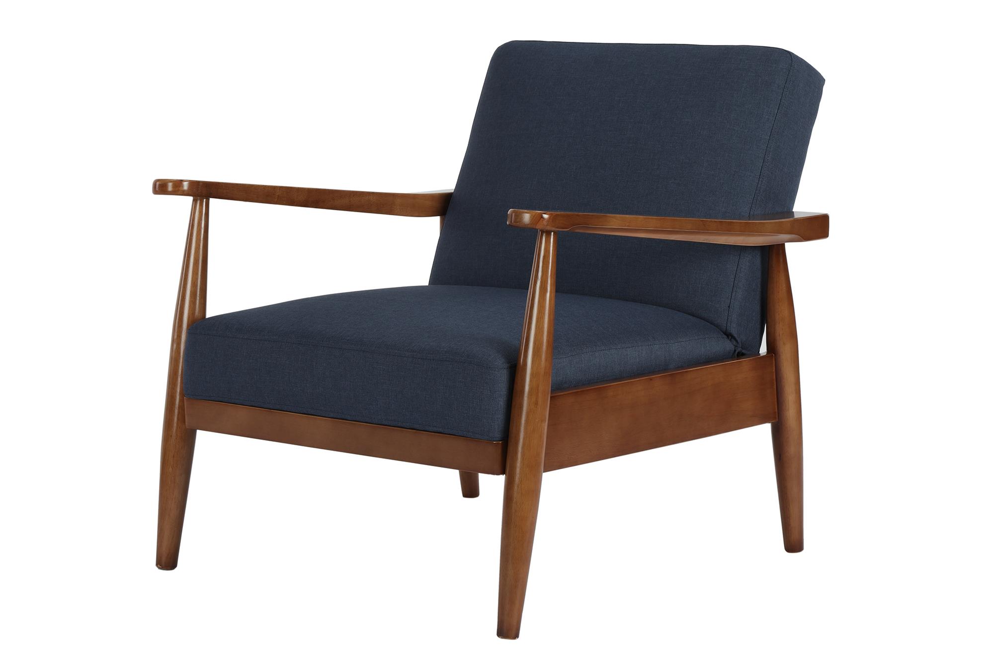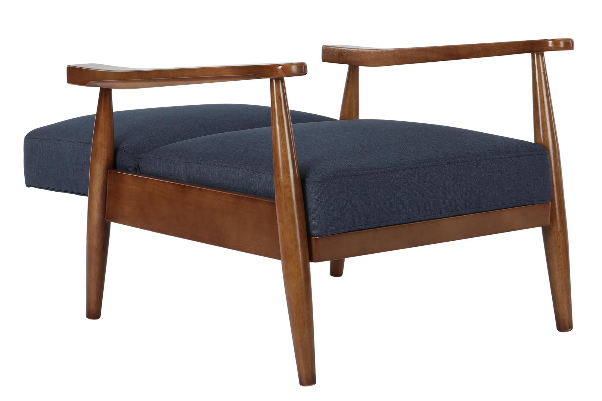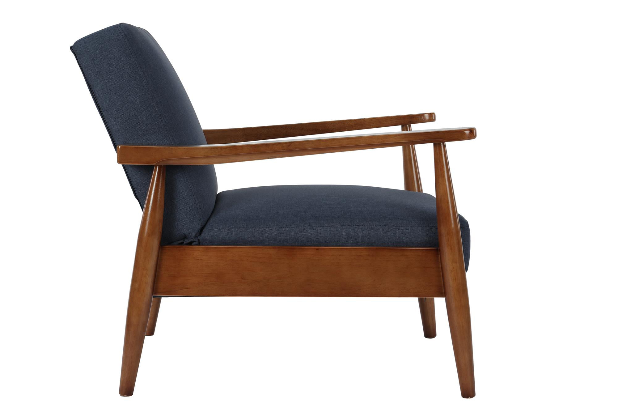Better Homes & Gardens Mid Century Solid Wood Reclining Accent Chair with Upholstered Seat. Blue