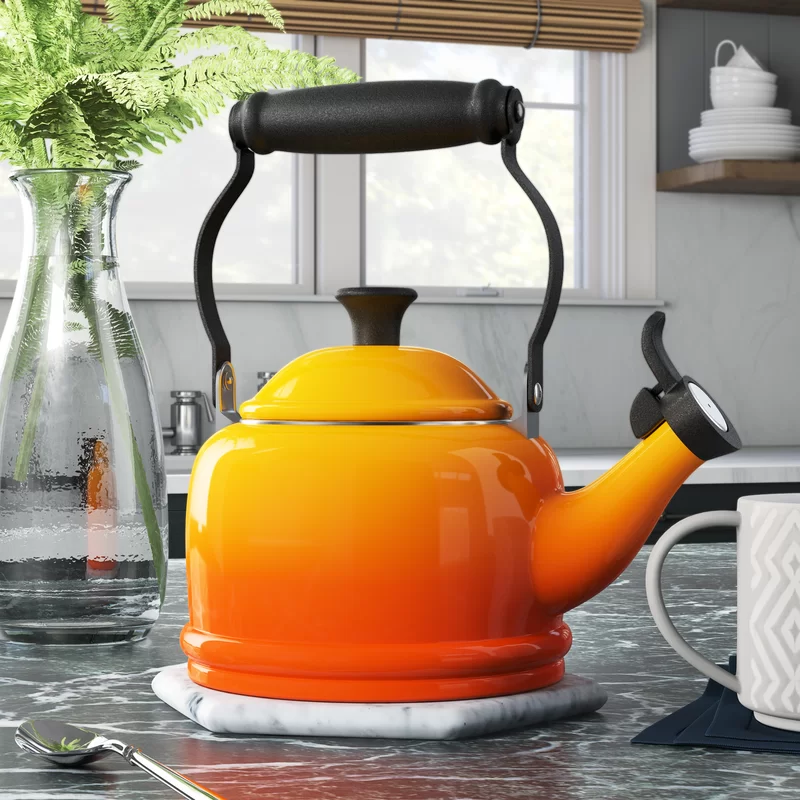 Le Creuset Q9401-2 Enamel On Steel Demi Tea Kettle. 1.25 qt.. Flame