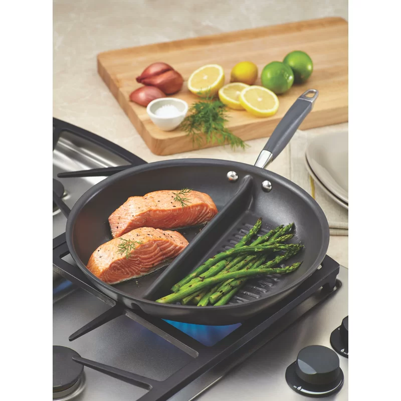 Anolon 83655 Advanced Hard Anodized Nonstick Divided Grill / Griddle Pan / Skillet - 12.5 Inch. Gray