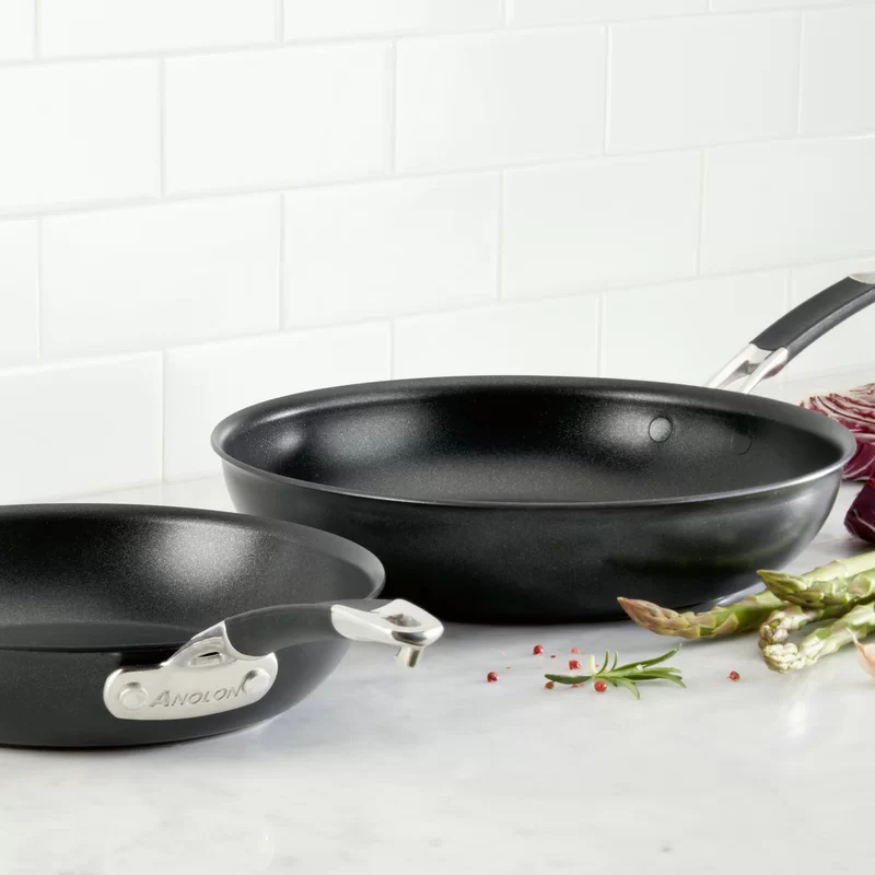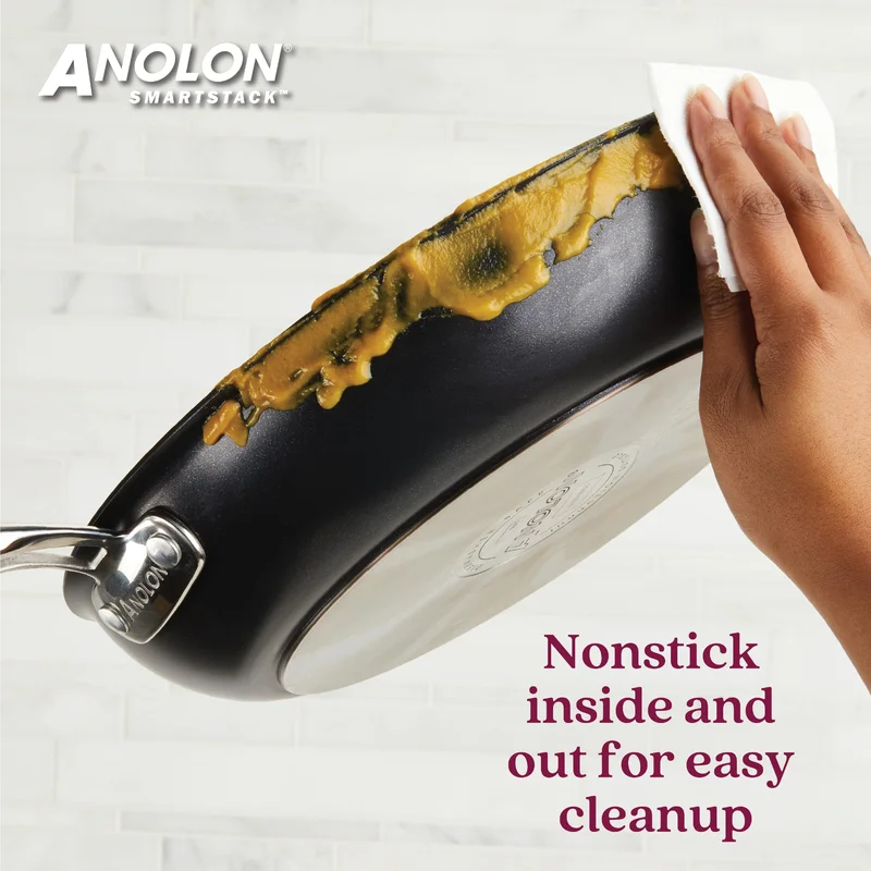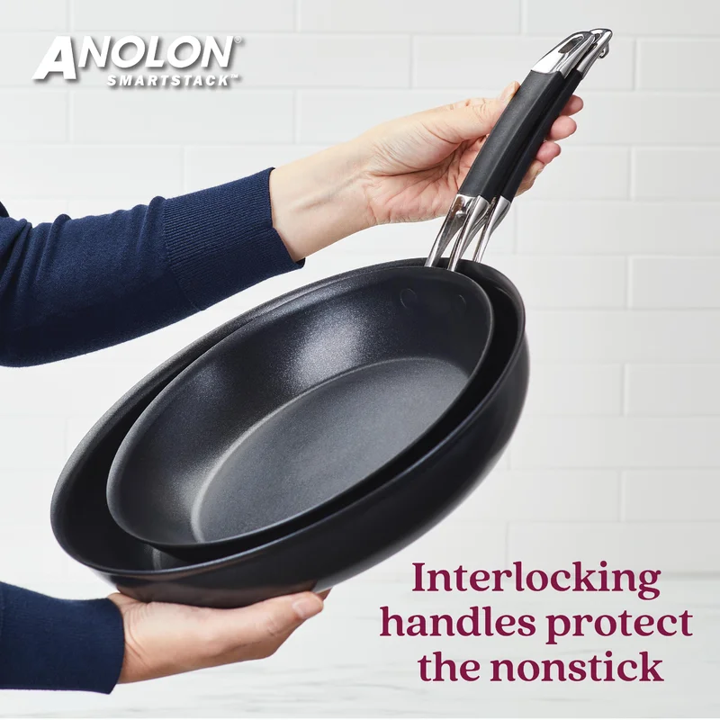 Anolon 87540 Smart Stack Hard Anodized Nonstick Frying Pan Set / Fry Pan Set / Hard Anodized Skillet Set - 8.5 Inch and 10 Inch. Black