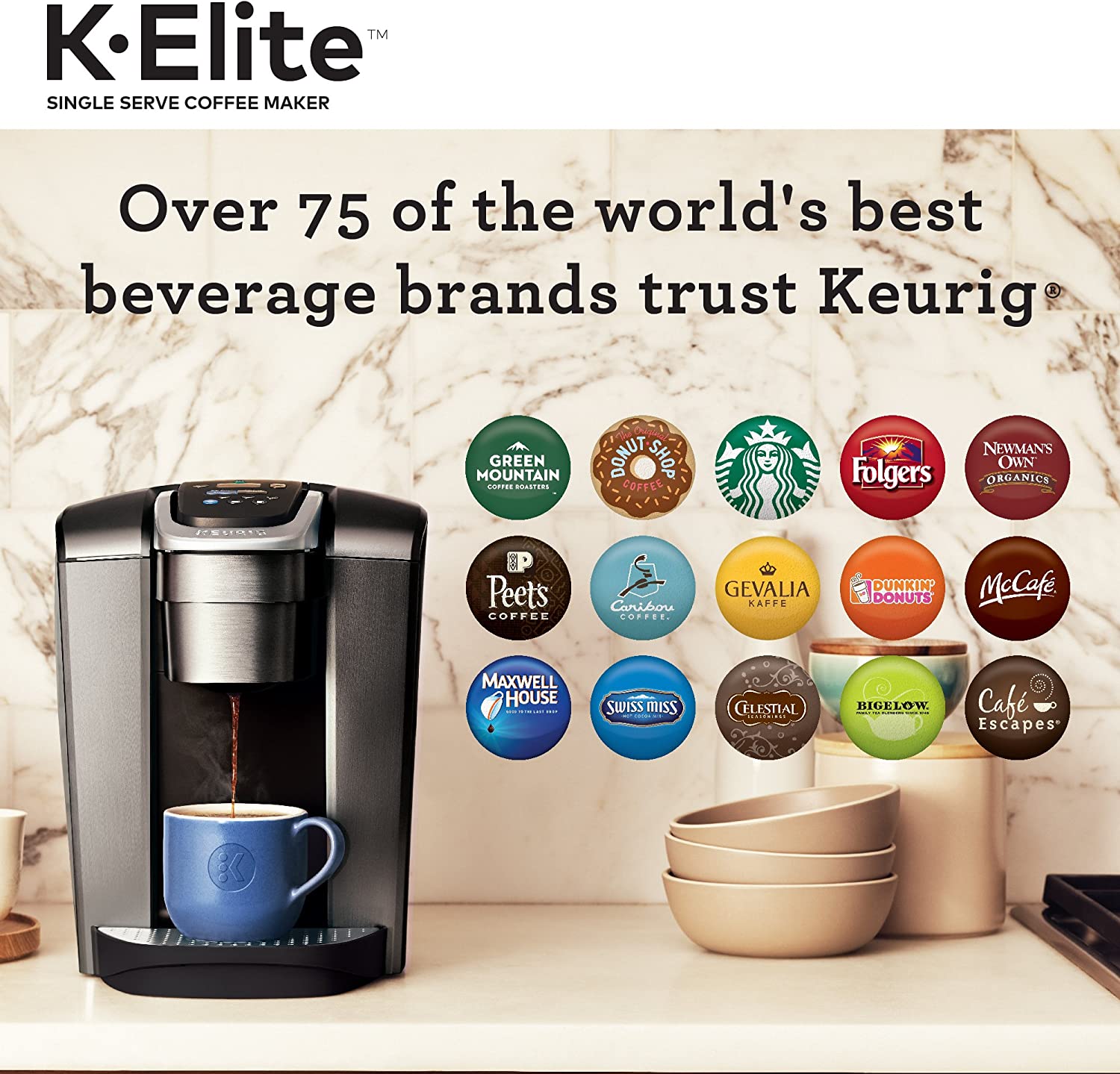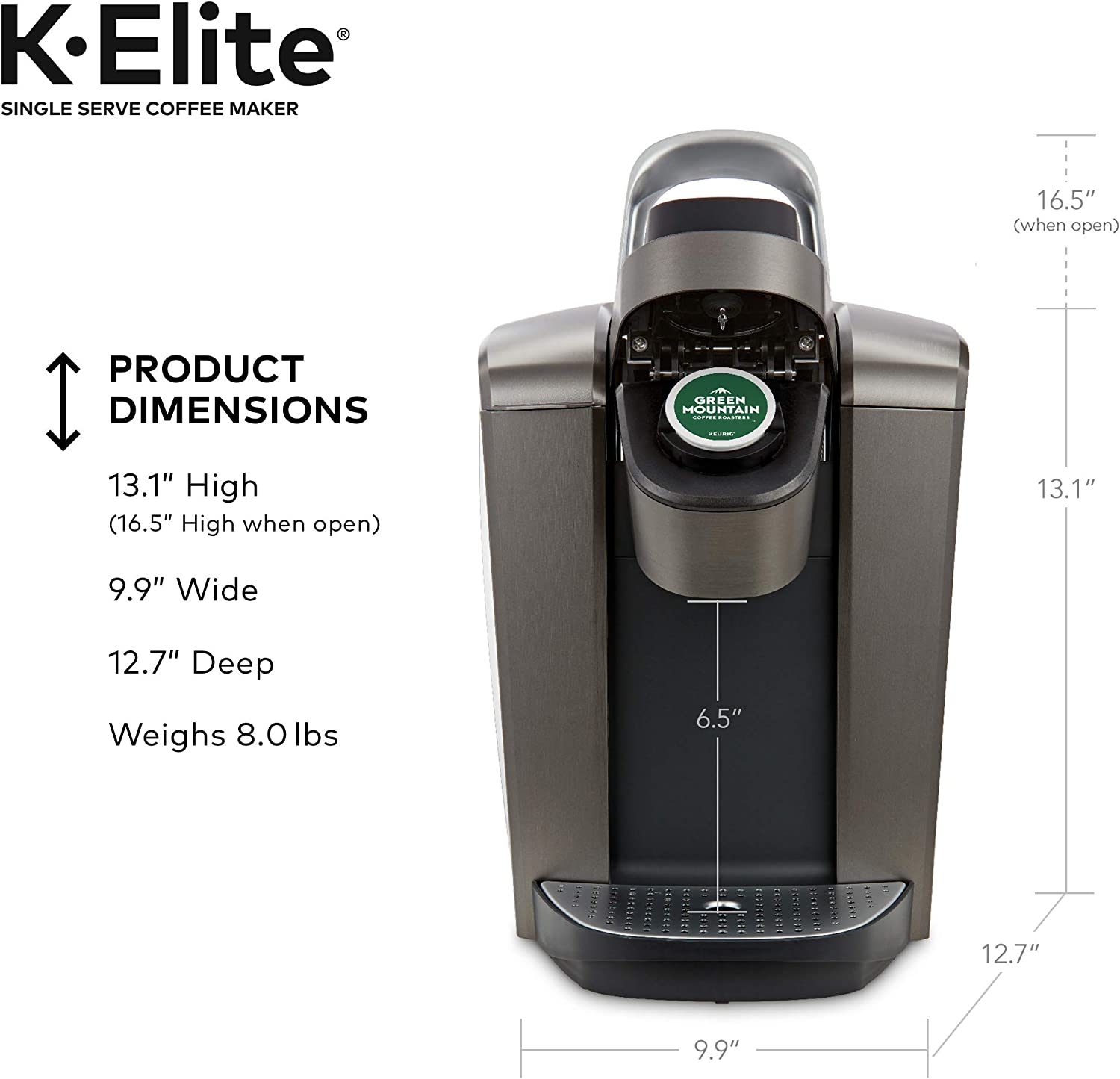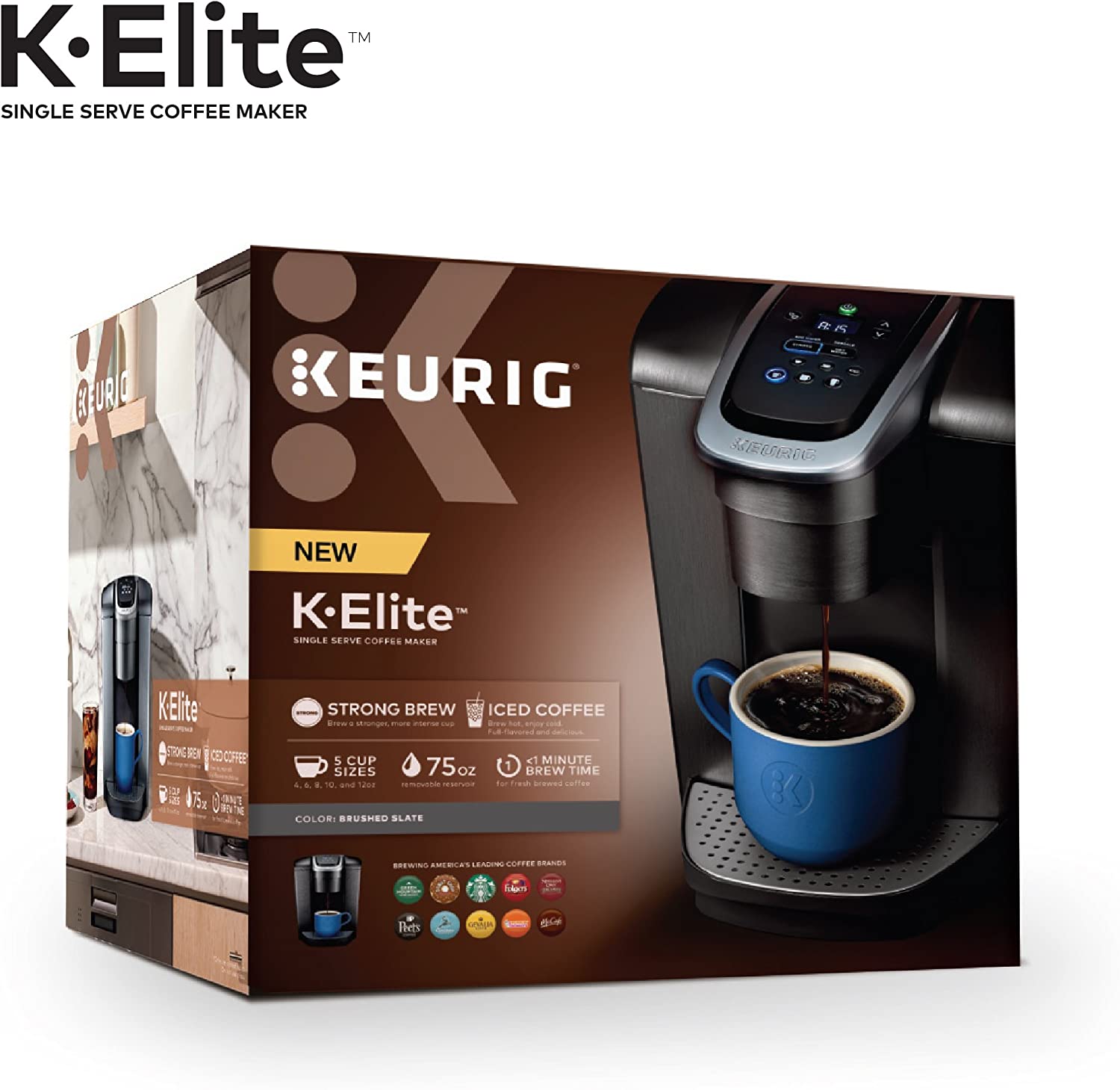 Keurig K-Elite Coffee Maker. Single Serve K-Cup Pod Coffee Brewer. With Iced Coffee Capability. Brushed Slate