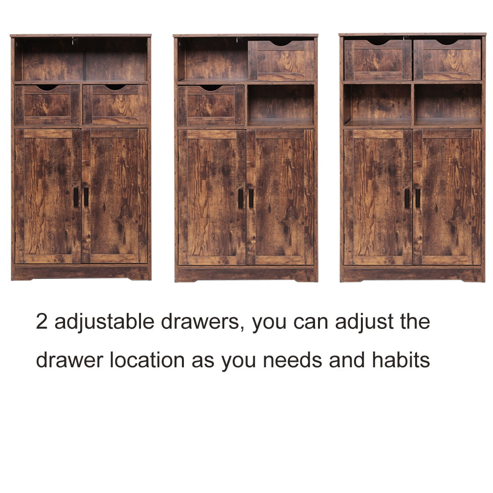 IWELL Storage Cabinet with 2 Adjustable Drawers & 2 Shelf. Bathroom Floor Cabinet for Living Room. Bathroom. Kitchen. Rustic Brown