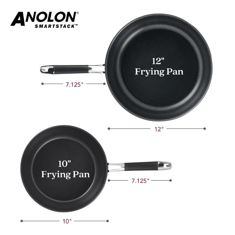 Anolon 87539 Smart Stack Hard Anodized Nonstick Frying Pan Set / Fry Pan Set / Hard Anodized Skillet Set - 10 Inch and 12 Inch. Black