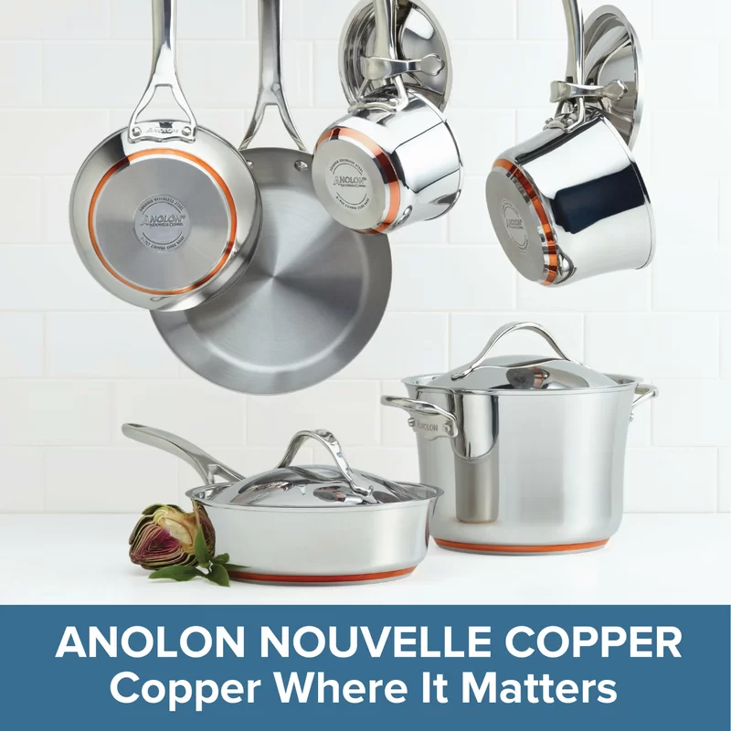 Anolon 77710 Nouvelle Stainless Stainless Steel Frying Pan Set / Fry Pan Set / Skillet Set - 8 Inch and 9.5 Inch . Silver
