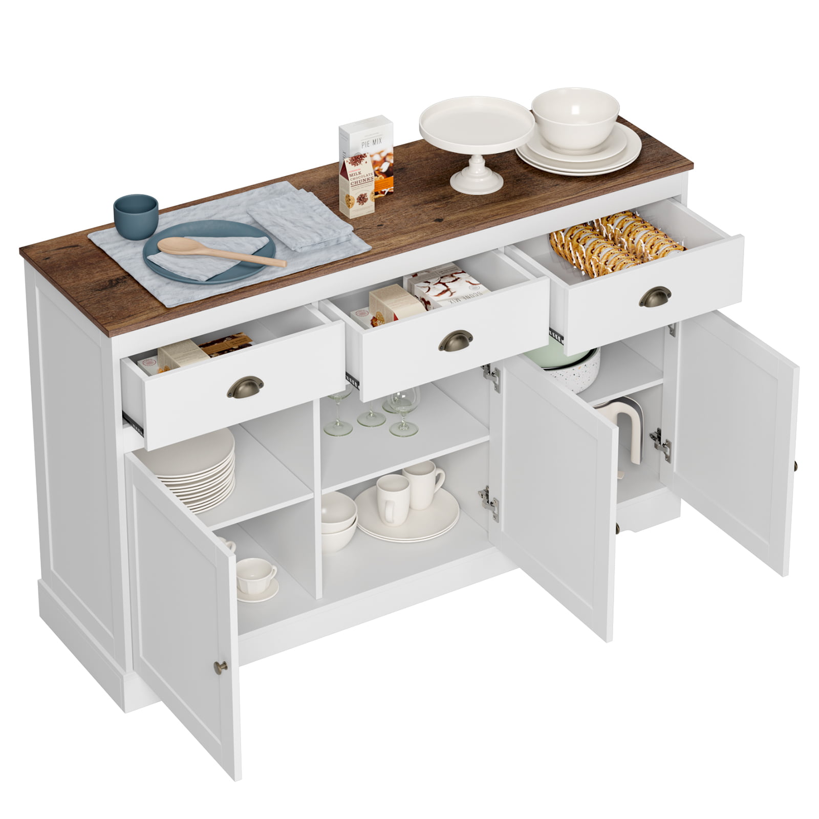 Homfa Sideboard Storage Cabinet with 3 Drawers & 3 Doors. 53.54” Wide Buffet Cabinet for Dining Room. White