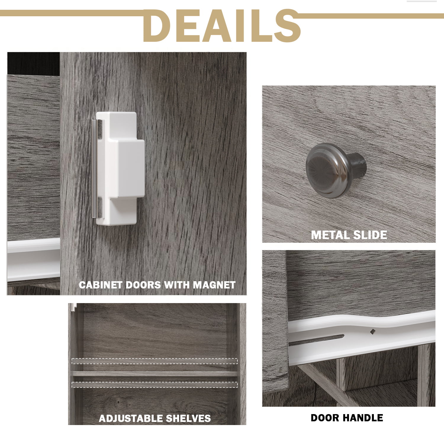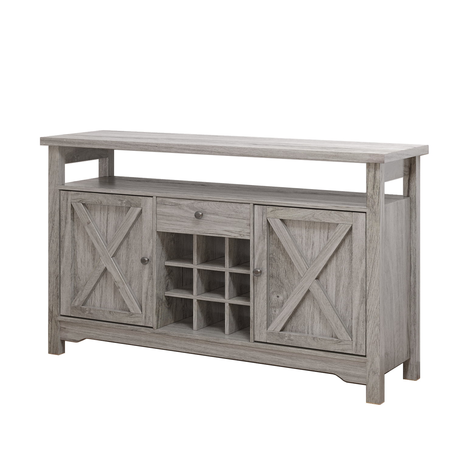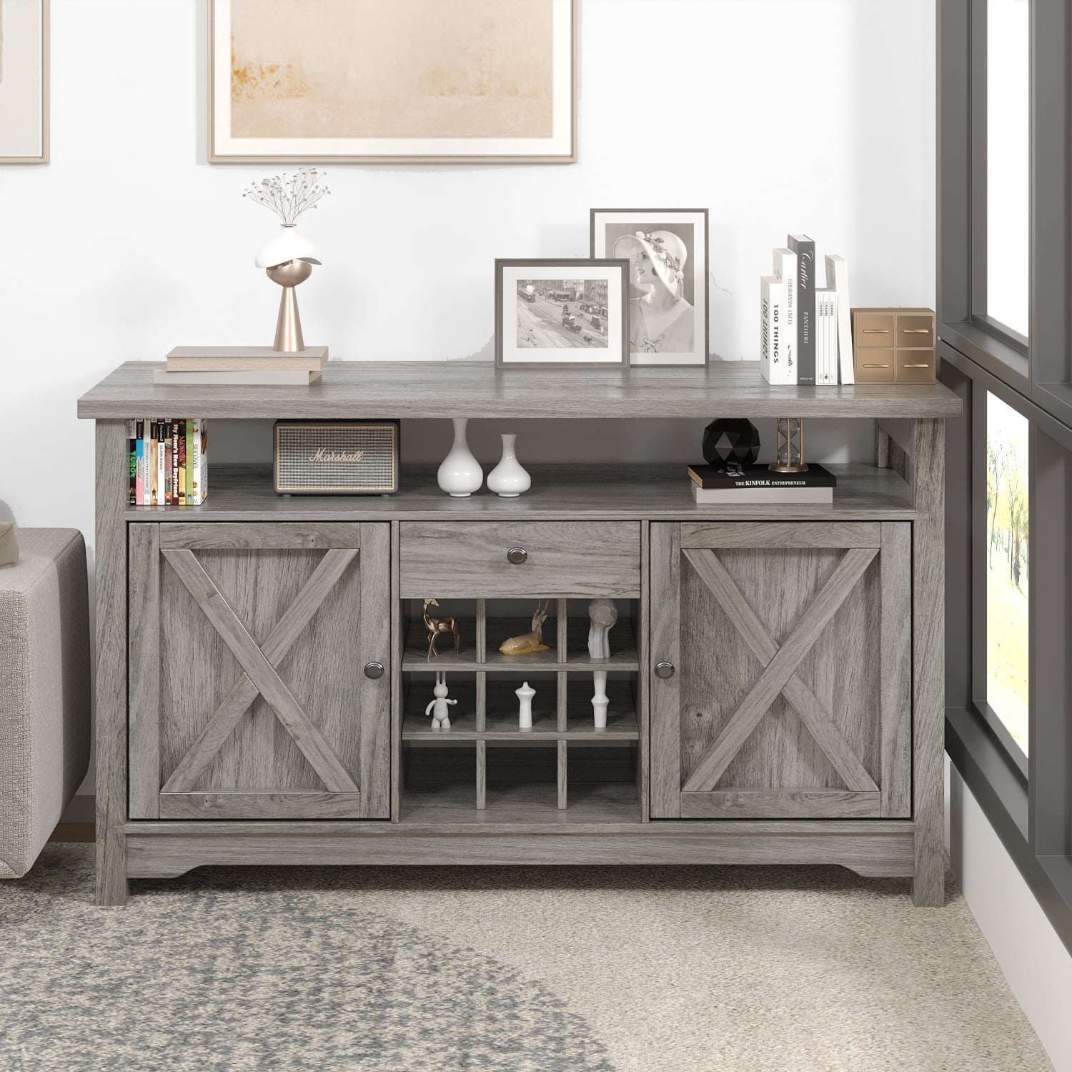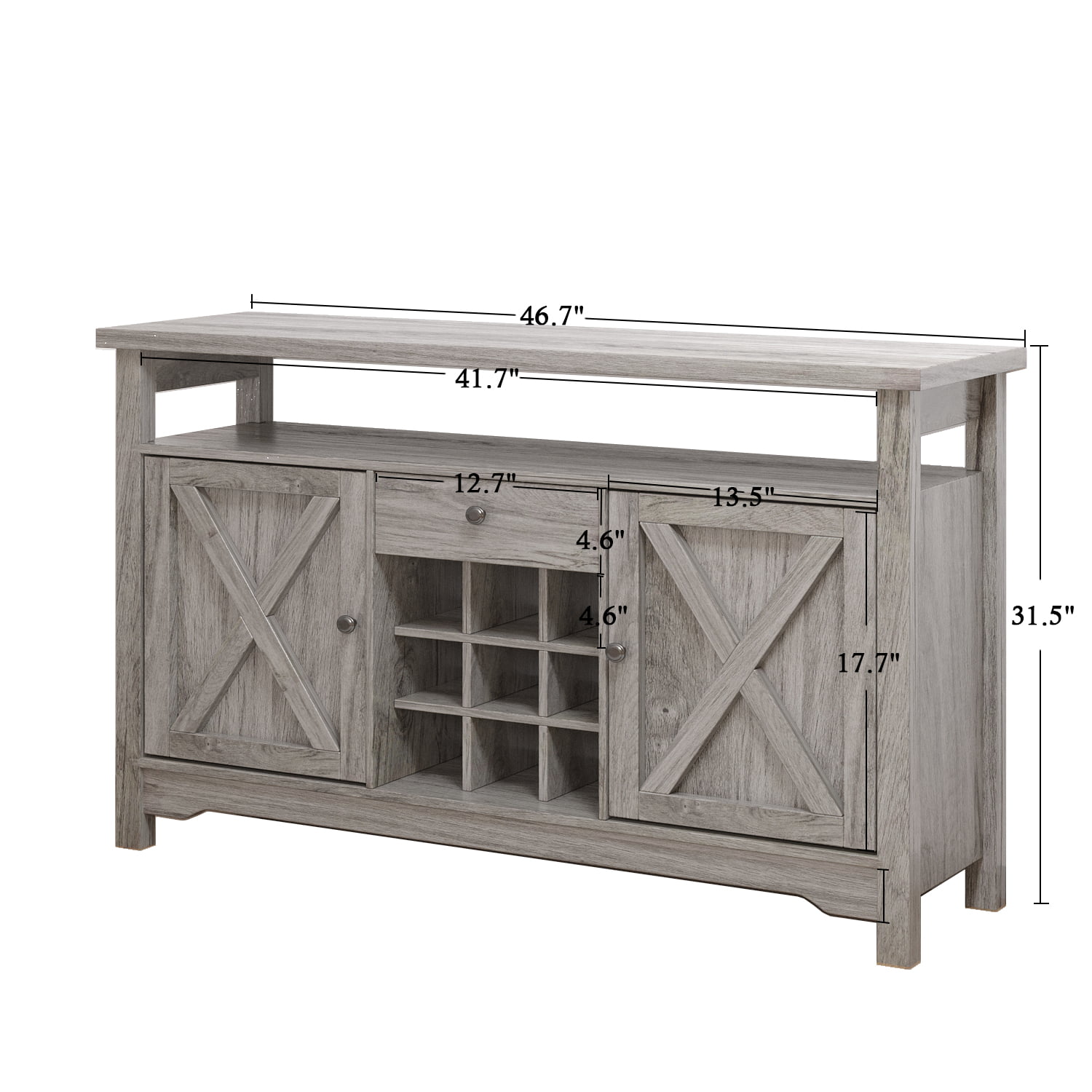 Farmhouse Coffee Bar Cabinet. 47″ Kitchen Buffet Storage Cabinet with Barn Door. Liquor Cabinet with Wine Rack. Gray